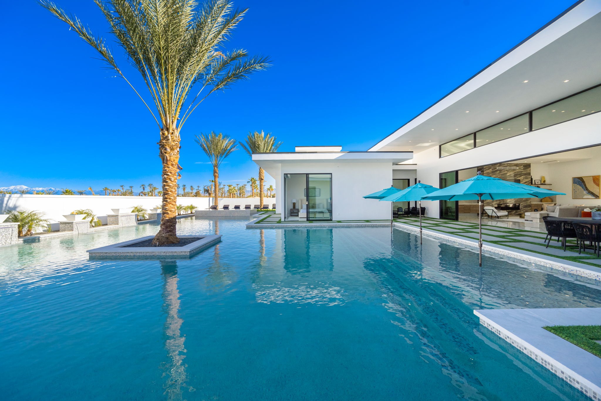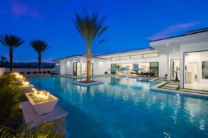 Enjoy the beauty of modern lighting, contemporary artwork, chic furnishings, Grohe plumbing fixtures and pivoting glass entry doors. Landscaping is impeccable and upscale, and select residences feature putting greens, fire bowls and fountains. Enviable location right next to the private communities of The Madison Club, The Citrus Club and Hideaway Golf Club makes it easy for guests to walk or bike to concerts, shops and restaurants. The Indian Wells Tennis Garden, high-end shopping on El Paseo, abundant recreation, and Palm Springs International Airport are all within easy reach. The ultimate luxury vacation awaits…book your unforgettable stay today.