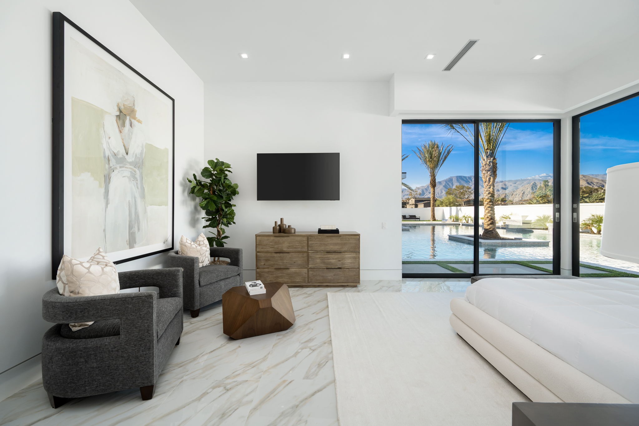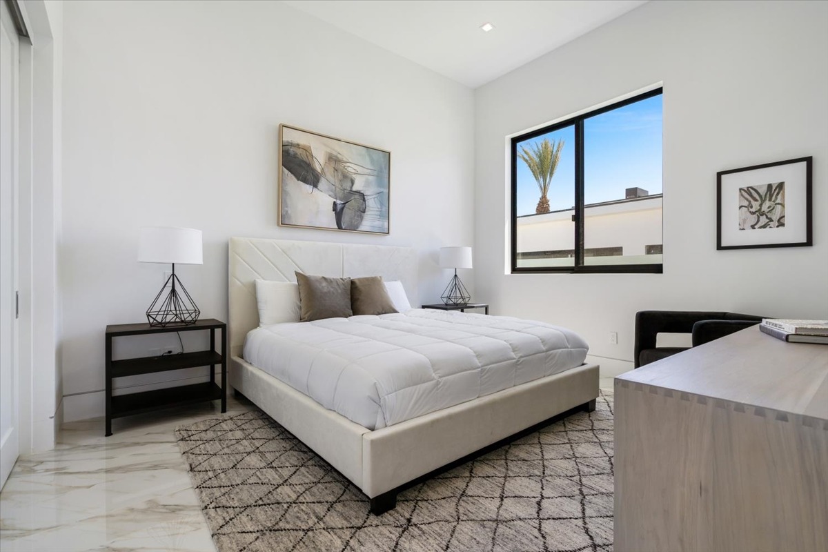 Welcome to this ultra-exclusive vacation rental , where this one-of-a-kind residence will exceed all of your expectations while embracing you, your family and your friends with the finest modern architecture and appointments available. Completely unprecedented in the world of short-term-rental properties, the gated community showcases a limited edition of 15 extraordinary residences of uncompromising luxury in a unique village-style enclave that features panoramic mountain views, a private gym, pickleball, security, bikes for everyone, fitness classes and more, all located right across the street from the Empire Polo Grounds, home to the annual Coachella, Stagecoach music festivals, and five minutes to restaurants and shopping.