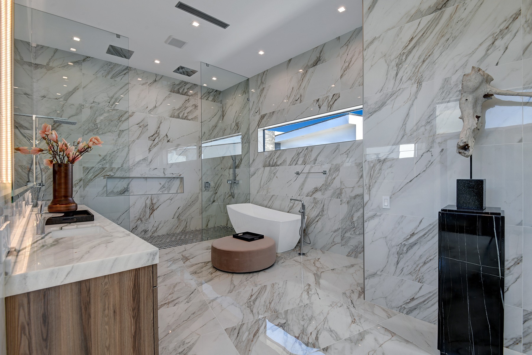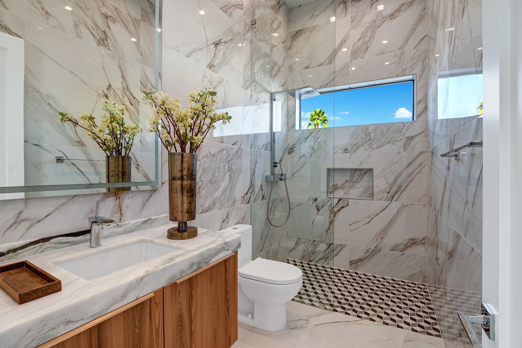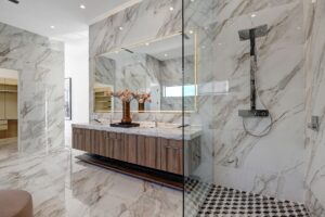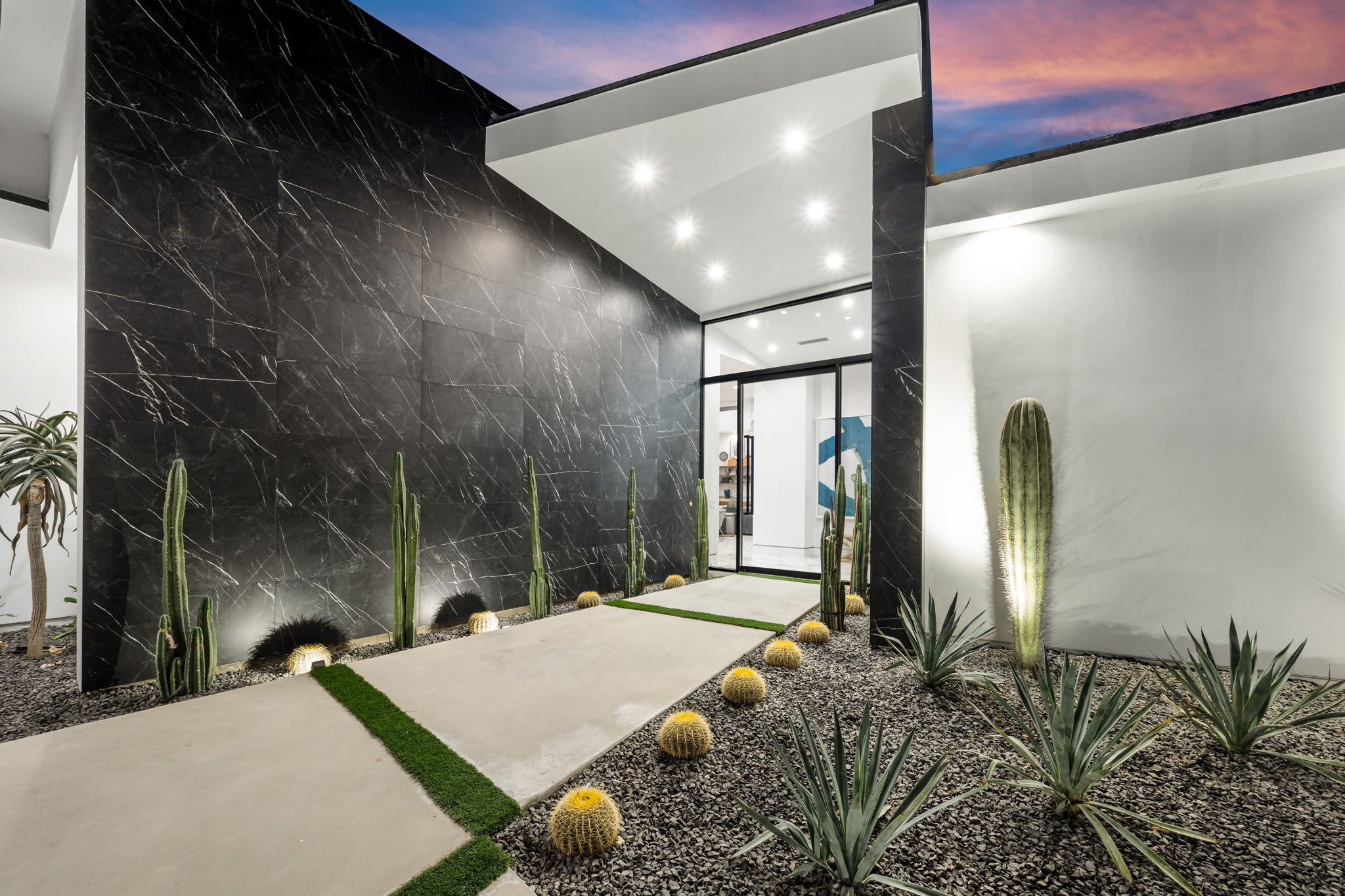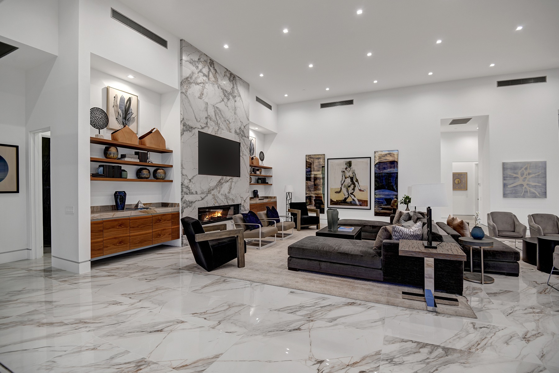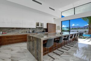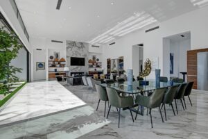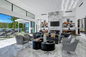 Introduced by an elegant gated courtyard, this single-level estate features an oversized pool with two tiled Baja shelves and a step-down bar area with fire pit. A putting green and bocce ball court. A pivoting glass entry door opens to an equally impressive interior with soaring ceilings, walls of fold-away glass doors, gorgeous polished marble imported from Spain, and sleek custom cabinetry imported from Germany and Hansgroge fixtures in all bathrooms and kitchen. A gallery-sized great room with dramatic linear fireplace provides space for grand-scale entertaining that opens to the kitchen, backyard, and resort pool and spa. Enjoy 6 ensuite bedrooms and 6.5 baths in approximately 4,900 square feet, including Fleetwood doors and windows, Miele appliances including built-in coffee stations, smart-home lighting and communications systems, primary suite walk-in closets with built-in Italian cabinetry, illuminated bath mirrors, solar power and 3-car garages with epoxy flooring.This prestigious residential collection is moments from The Ritz-Carlton Resort & Spa, Sunnylands, Palm Springs International Airport, and luxury shopping and fine dining.17