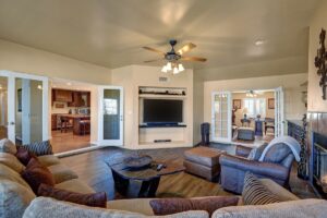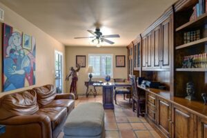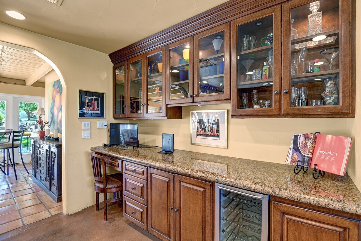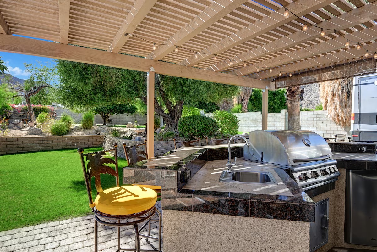 The backyard faces south for you to enjoy the wonderful mountain views while relaxing at the pool and spa, or by having some drinks at the built in BBQ bar. Enjoy the large backyard with fire pit, and a large grass areas for families to play.