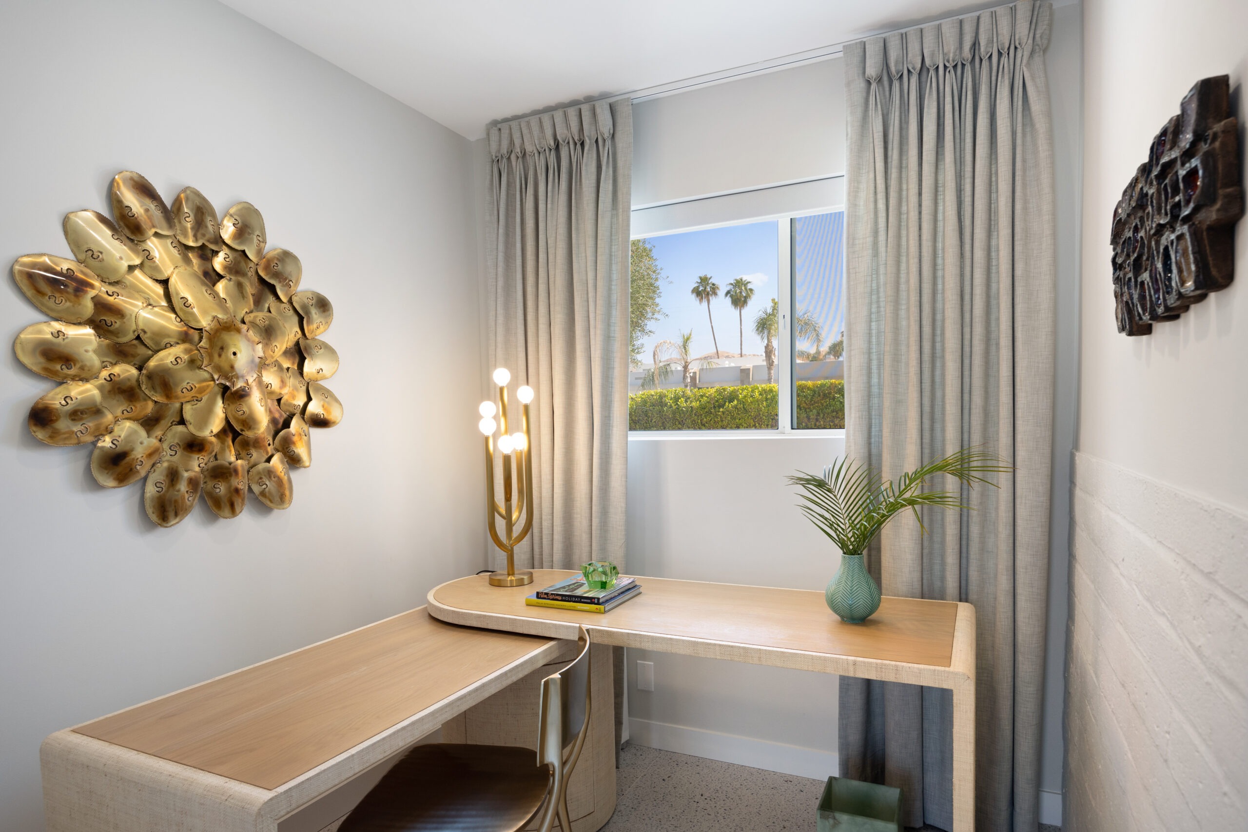 Welcome to the Desert Diamond! This stylishly-curated and thoughtfully-designed home has been lovingly put together with the sophisticated, professional traveler in mind. You’ll find the amenities of a 5-star hotel, but with all the pleasures and privacy of a comfortable home — your own saltwater pool, spa, gym, office, gourmet kitchen, and outdoor kitchen. Expansive foldaway glass doors allows the living space to become one with the desert. You won’t want to leave!