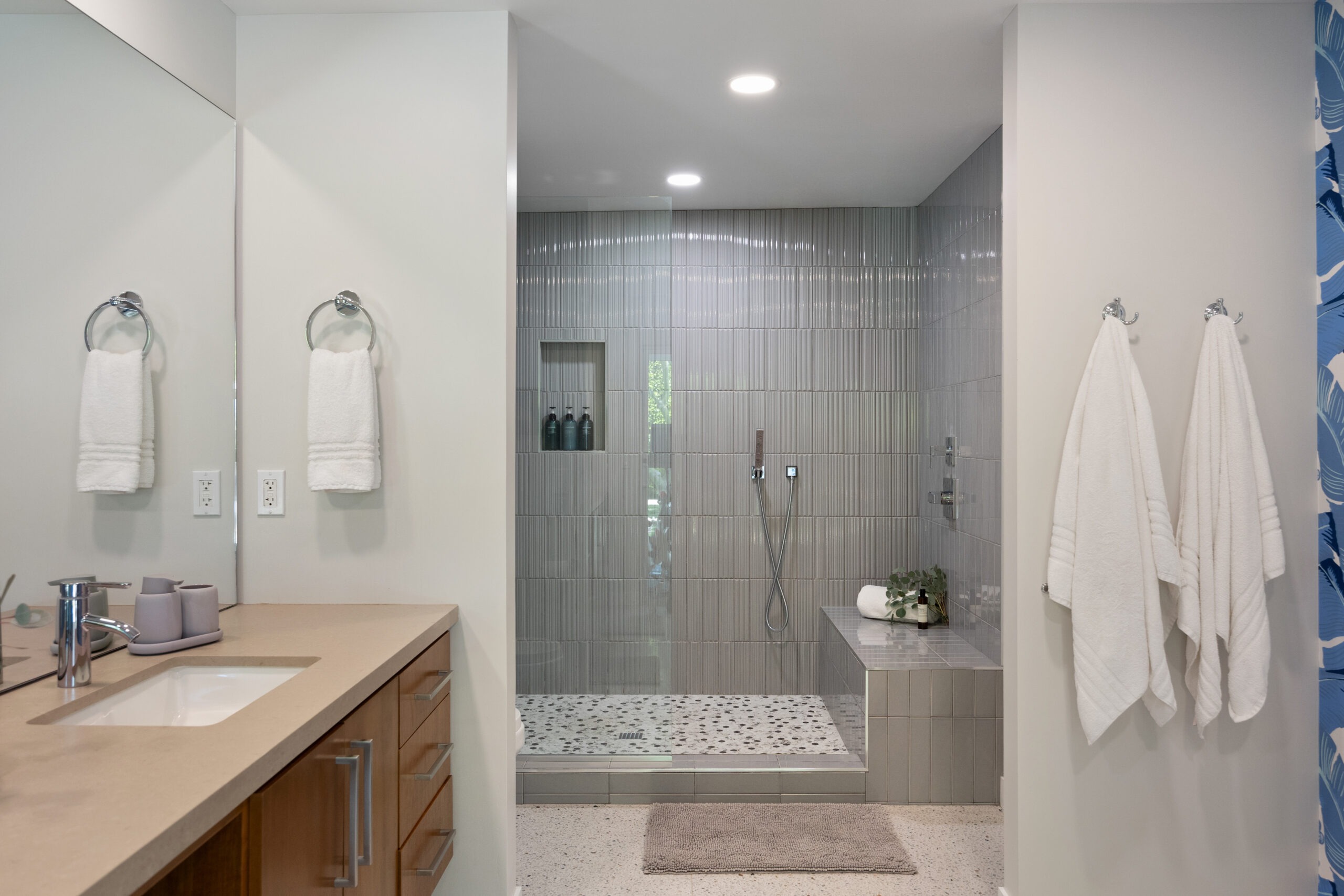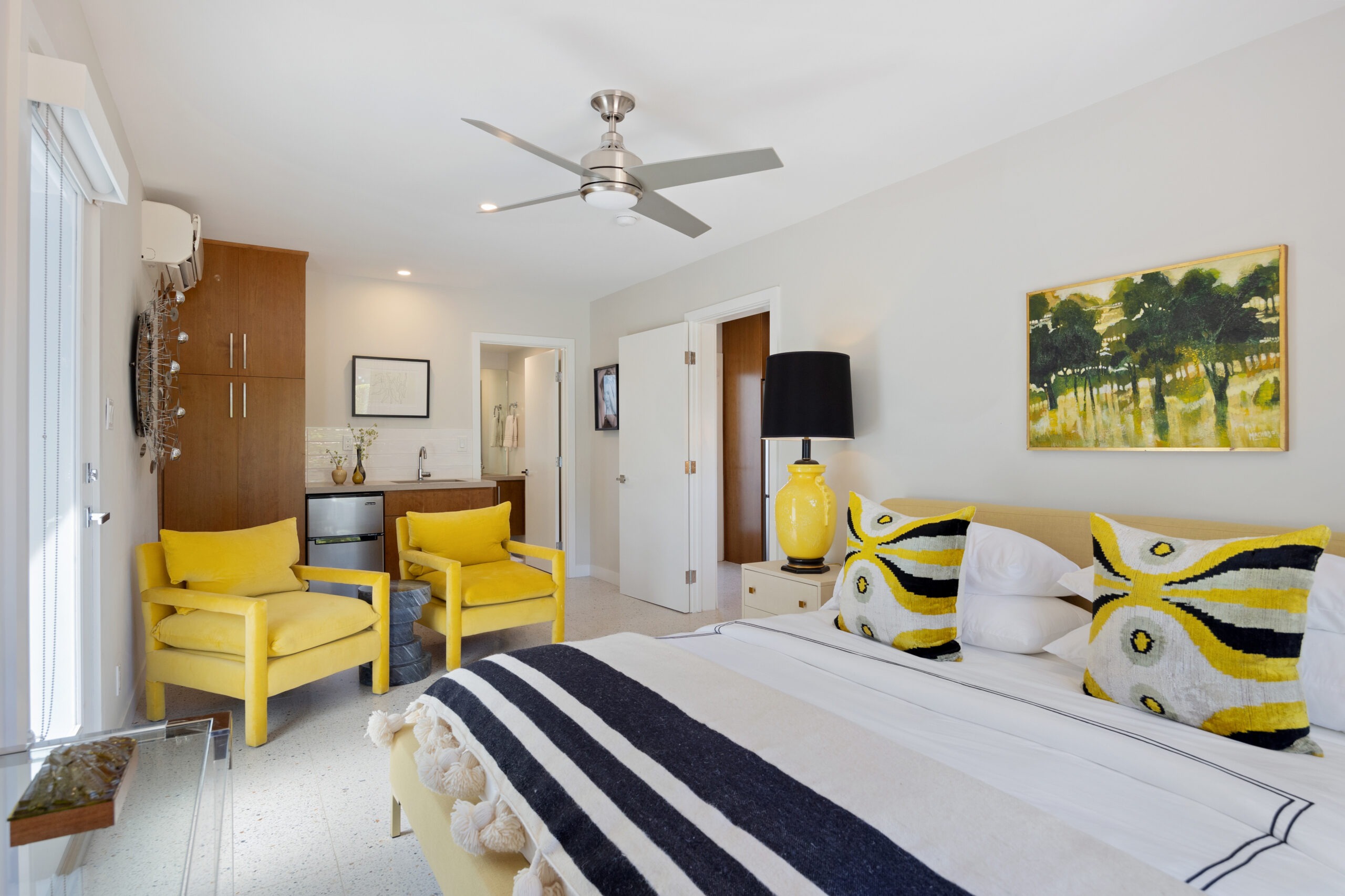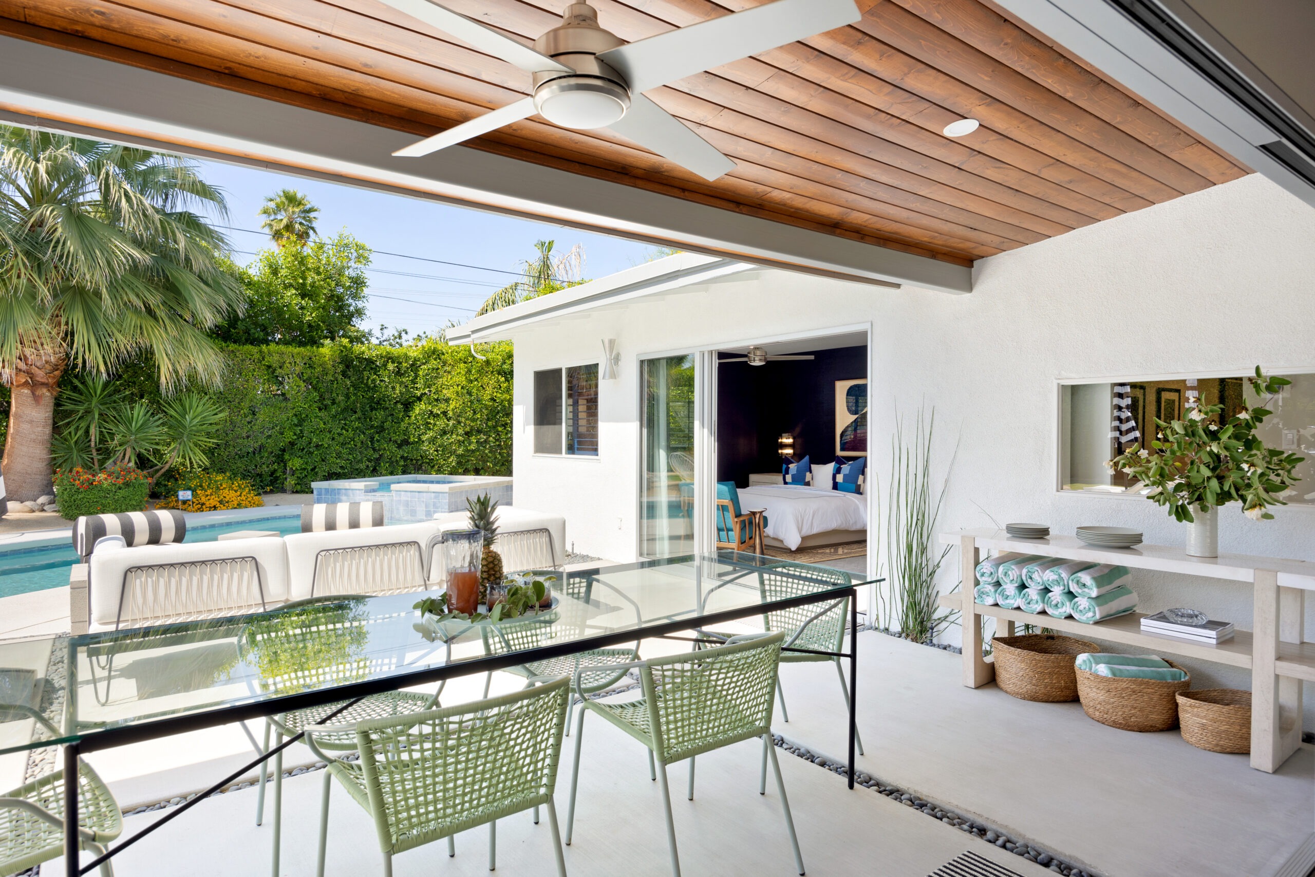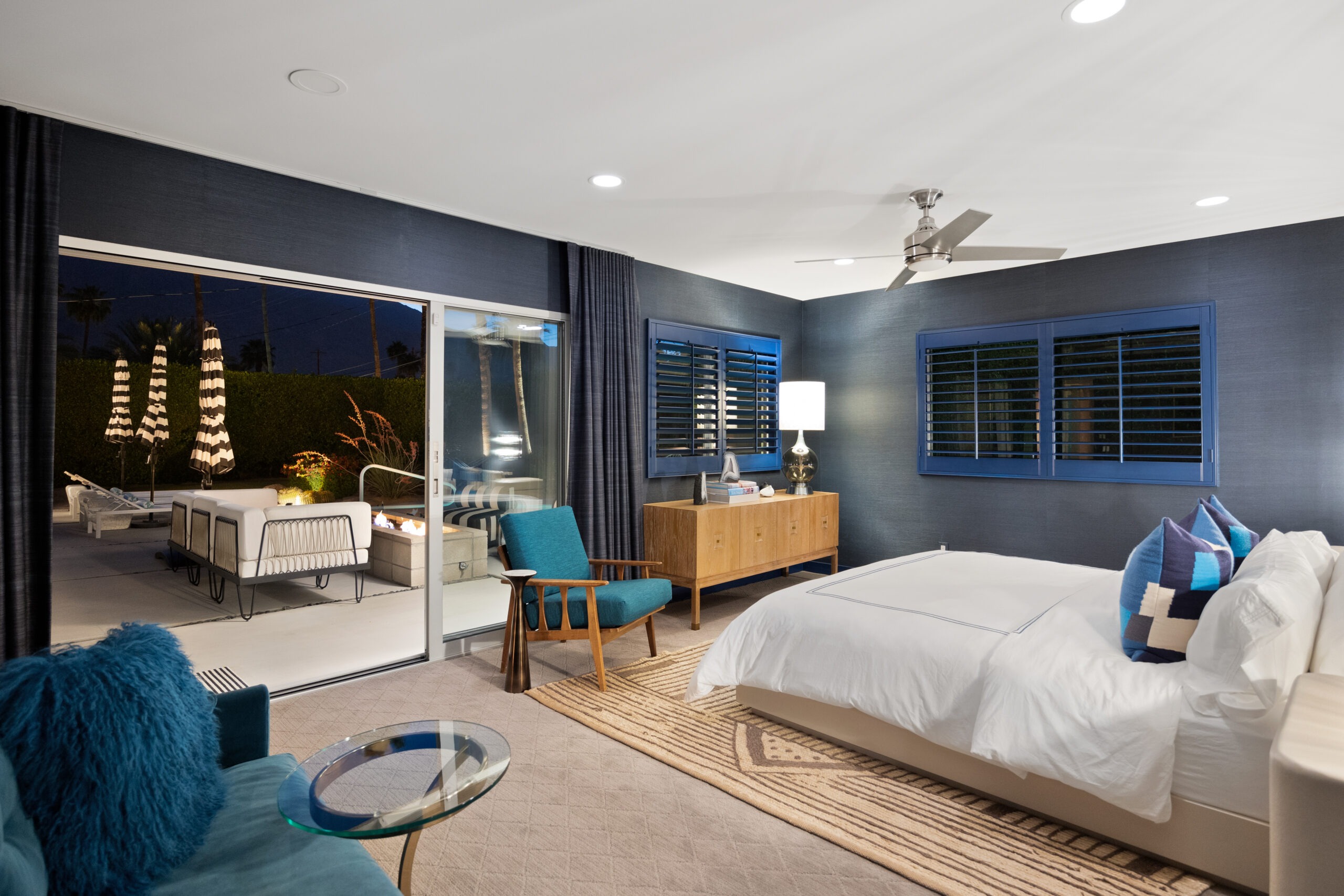 Immerse yourself in a luxe vacation of a lifetime in this Mid Century modern vacation rental that has been completely remodeled and reimagined! This is resort living in the heart of Palm Springs. New and notable vintage furniture and art, each detail has been carefully curated and professionally designed to for the ultimate experience for our guests. Salt water Pool and Spa, BBQ, Bocce Ball, Gym with free weights and PELOTON, fire pit, outdoor shower. Show all descriptionThe space