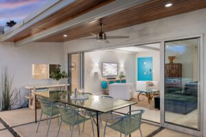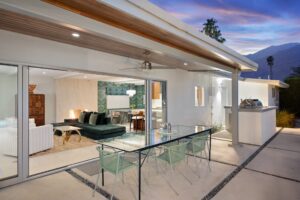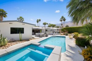The indoor/outdoor living at this home is everything. It’s what we come to Palm Springs for. The saltwater pool and spa hug the immense patio. Spa heat is always included in your nightly rate. The pool can be heated for a nominal fee, which varies depending upon the time of year. We will discuss this with you upon booking, or can quote it for you ahead of time. Pool heat is usually needed through the months of November-May.