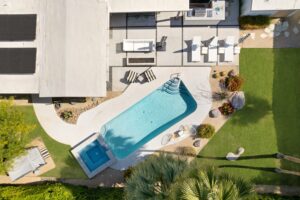 Beyond the pool and spa is a plush lawn, and a completely private desert landscaped lot (near 1/4 acre). It has a dreamy, comfortable daybed perfect for stargazing, and a bocce ball court nearby. This home is truly a luxury to behold.