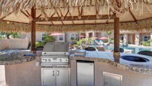 The master suite will welcome you with a fireplace, wine fridge, large jetted tub for two and slate shower. With nearly 6000 square feet of room to entertain your guests or family will enjoy your vacation. The exterior of the home is professionally landscaped with a beach entrance pool/spa. The pool is 60 X 30 with a dramatic waterfall. There are two BBQ areas, one with a Palapa Bar. Volleyball Court. Do not worry about neighbors, you can have music outside, and your kids can enjoy the pool as late as they want! Noise worry free!!