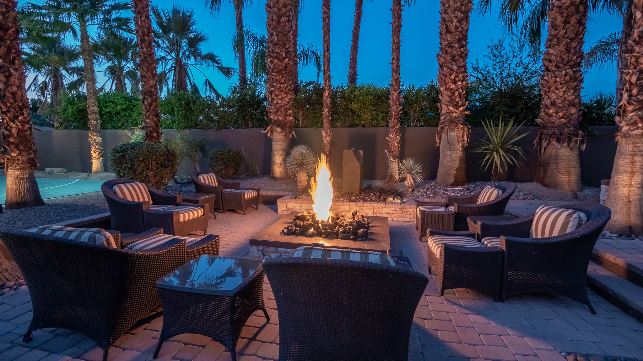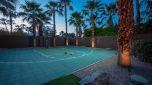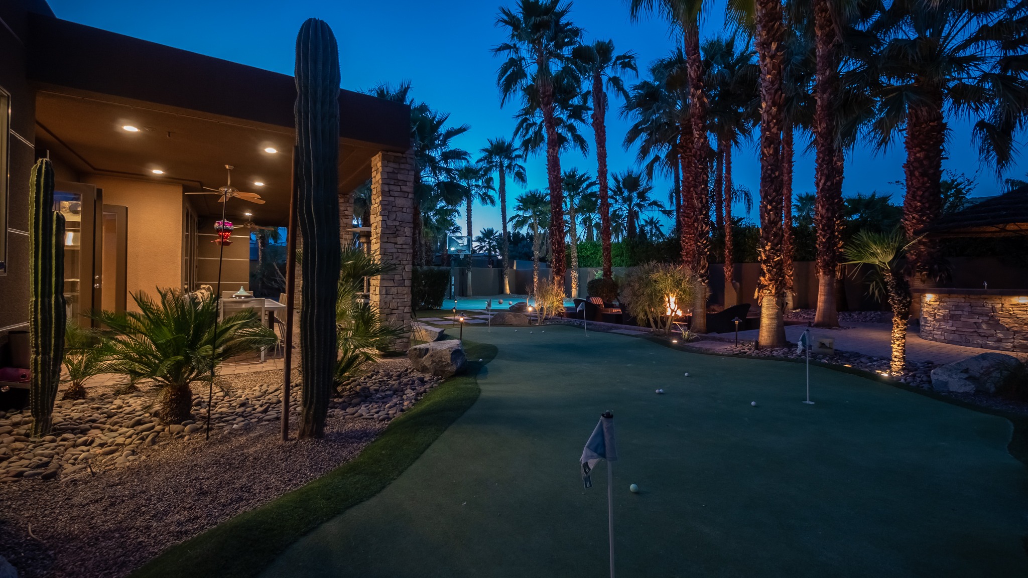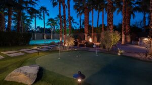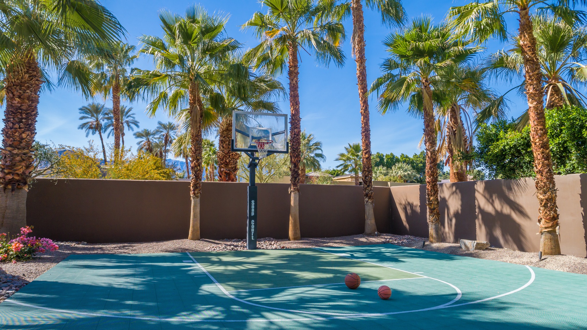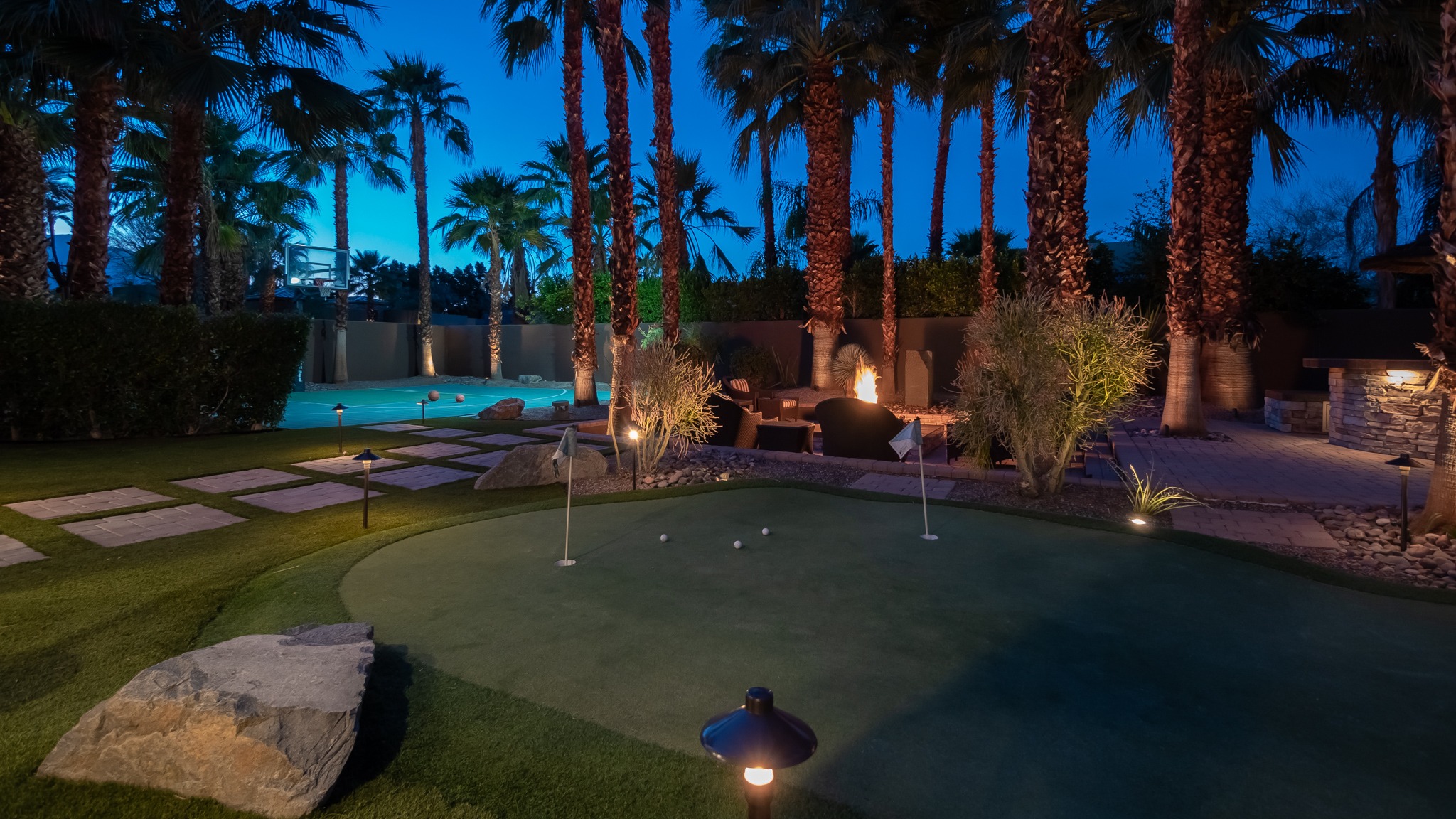 At our Rancho Mirage Estate, you and your loved ones will enjoy the best vacations in the desert. From the moment you enter your entertainment is completely assured. Fantastic basketball court, BBQ, palapa, bar area for perfect outdoor grilling with your family and friends, large outdoor fire pit and tiki torches throughout the patio, a sitting area to enjoy the most spectacular sunsets. Large four-hole putting green with a sand trap, state-of-the-art kitchen with high-end appliances throughout, and a gourmet chef’s kitchen for an easy quick meal or for a large holiday family reunion.