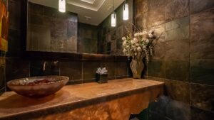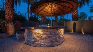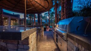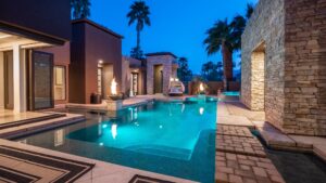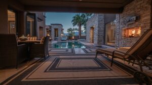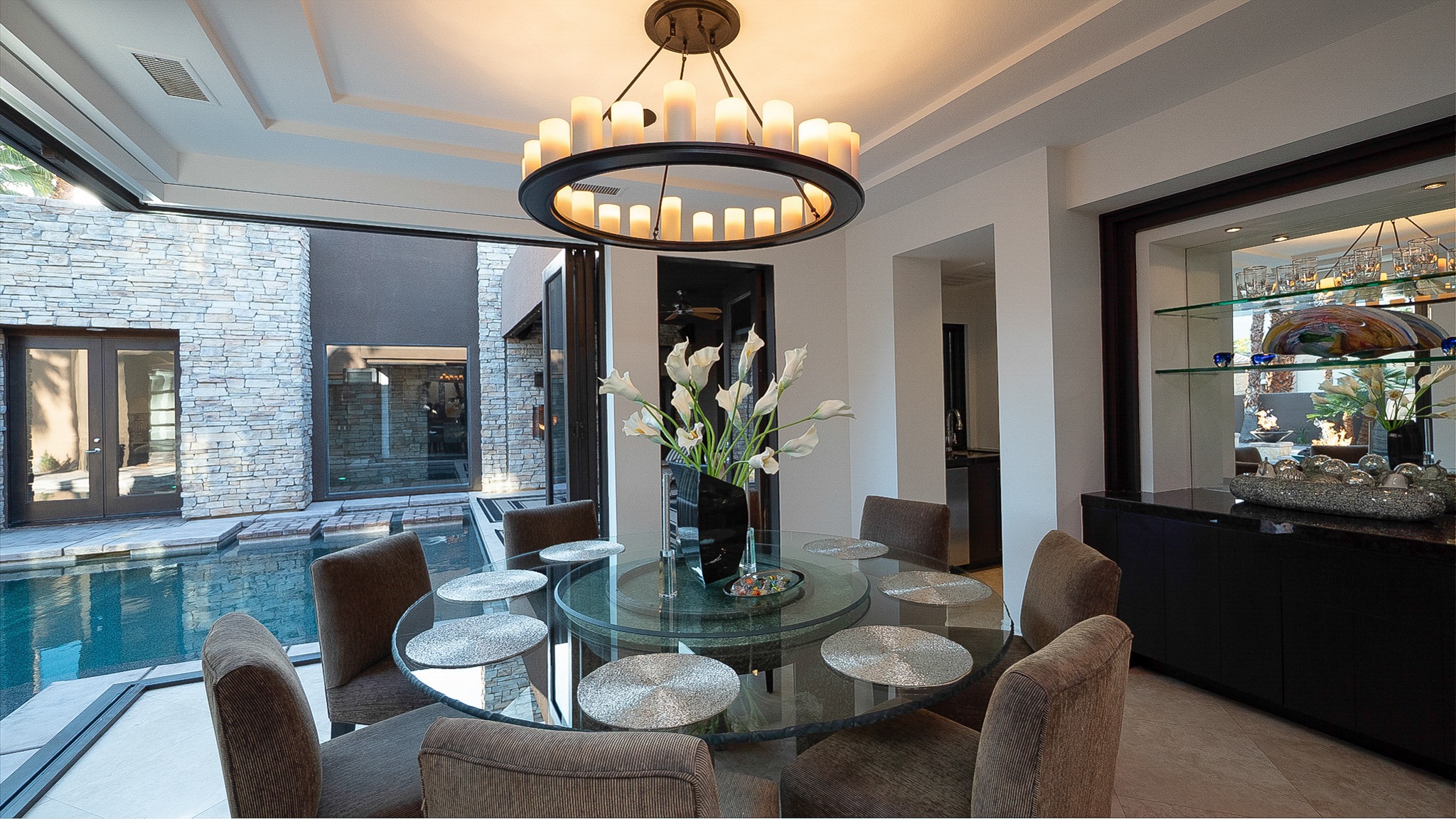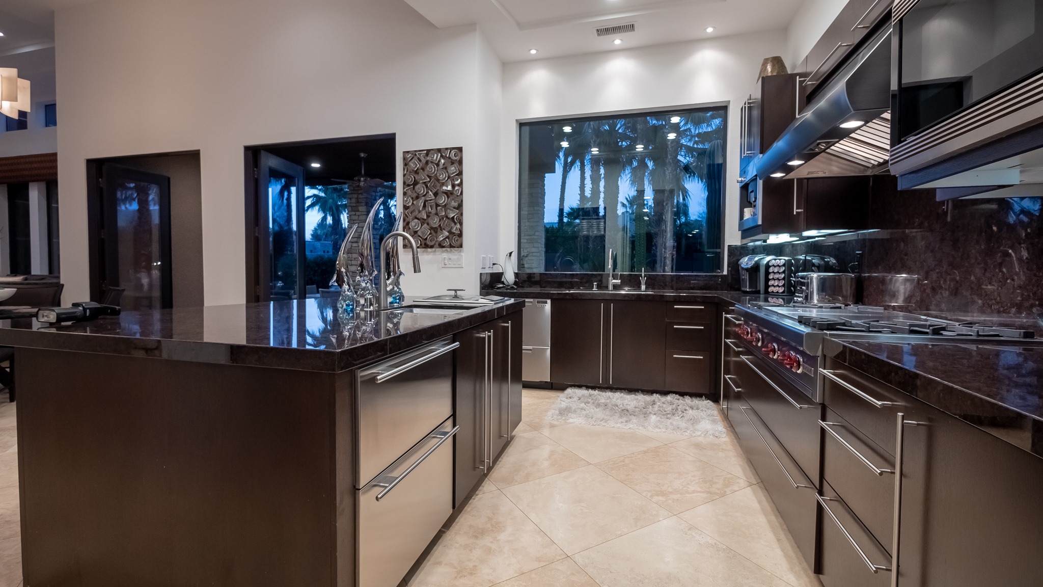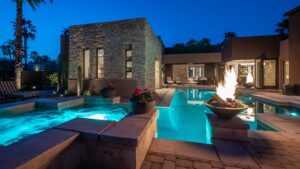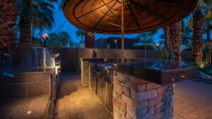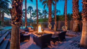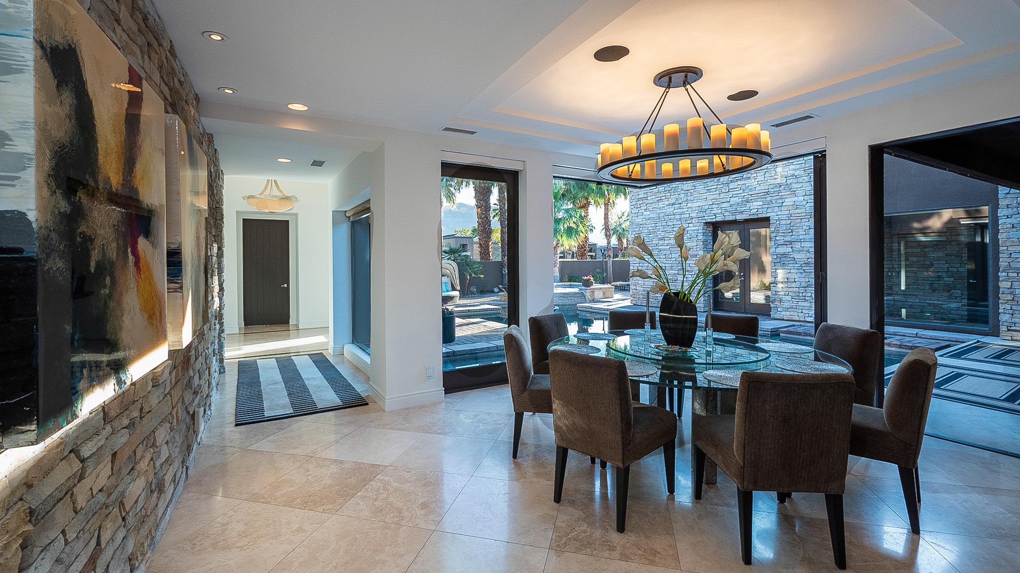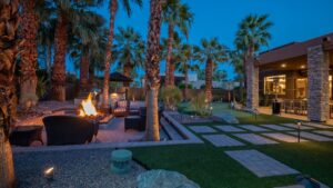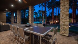 At our Rancho Mirage Estate, you and your loved ones will enjoy the best vacations in the desert. From the moment you enter your entertainment is completely assured. Fantastic basketball court, BBQ, palapa, bar area for perfect outdoor grilling with your family and friends, large outdoor fire pit and tiki torches throughout the patio, a sitting area to enjoy the most spectacular sunsets. Large four-hole putting green with a sand trap, state-of-the-art kitchen with high-end appliances throughout, and a gourmet chef’s kitchen for an easy quick meal or for a large holiday family reunion.