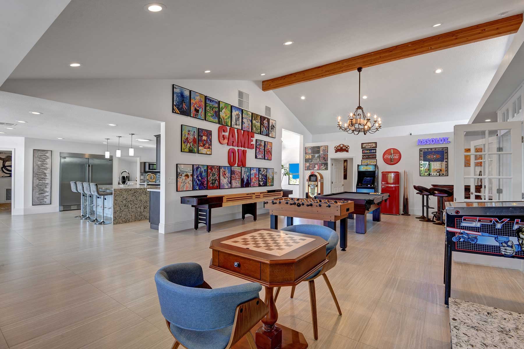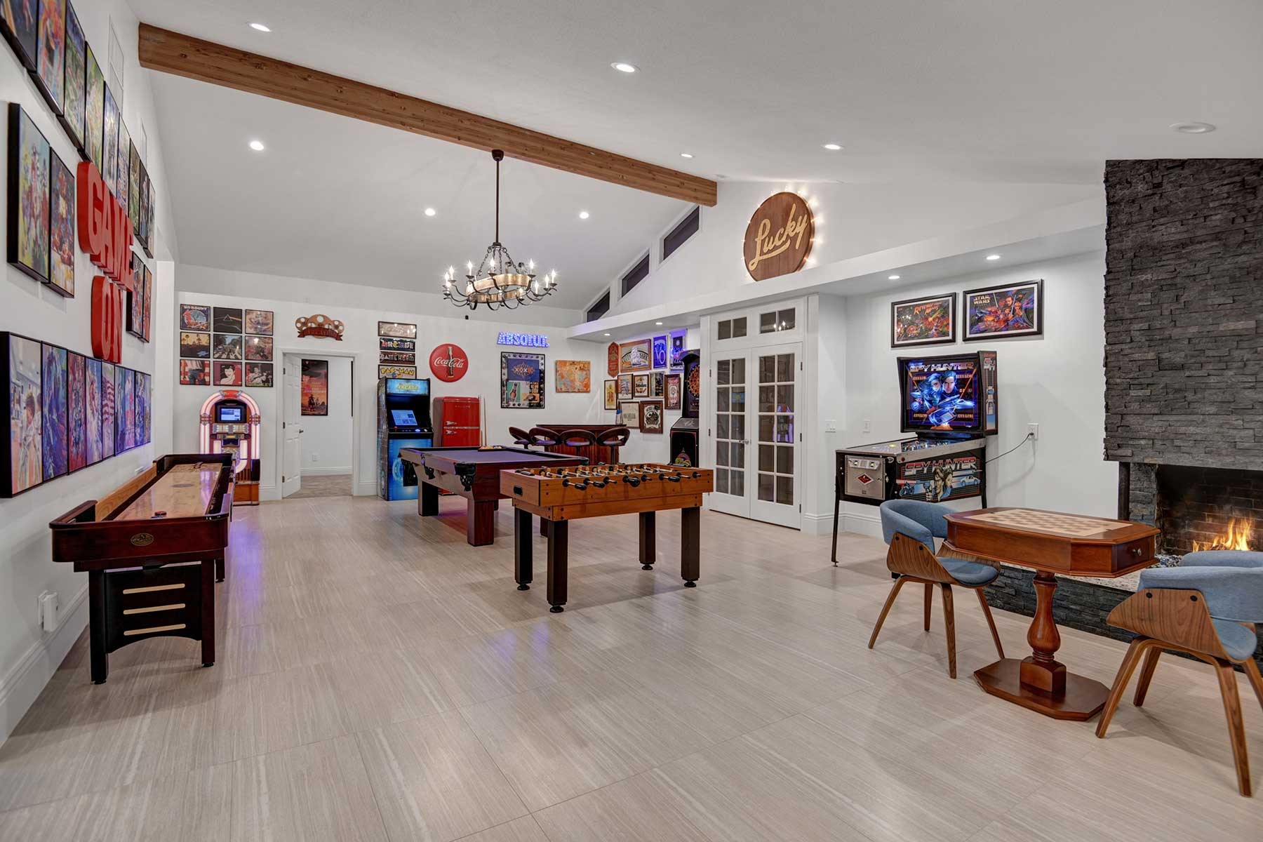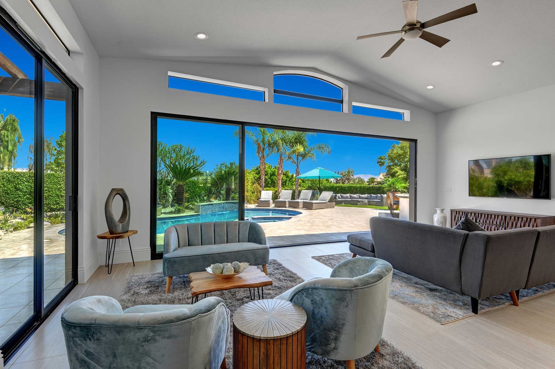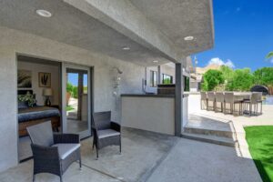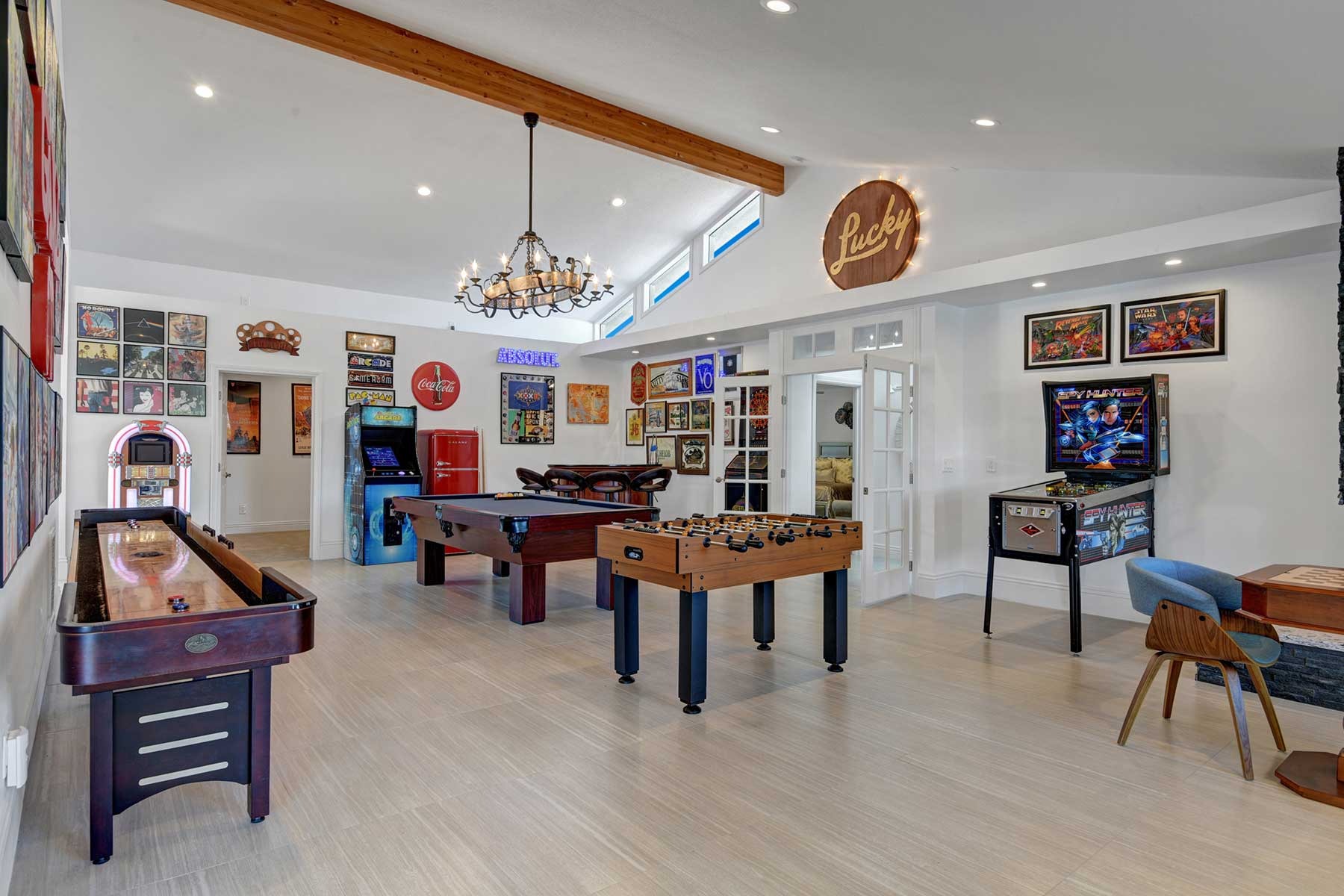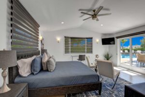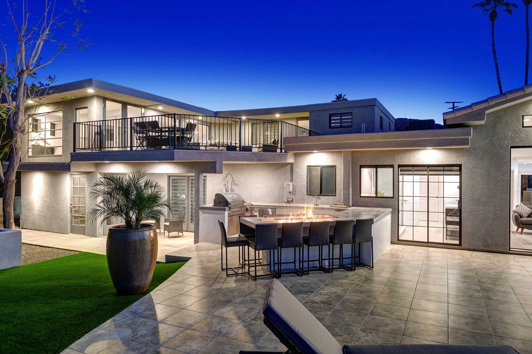 Completely remodeled 5,300 Sq.Ft. Home that has been carefully prepared to make sure you have the best vacations in the desert. Inside of the house you will find six bedrooms, and five baths, media cinema room, game room with arcades which includes pinball, pool table, shuffle board, foosball, chess and bar. Large living room that opens smoothly with a large sliding door to the outdoor pool. An open kitchen with everything you need for small meals or large family meals. House has a second floor with its own casita which includes a full kitchen, living room, bathroom and two queen beds.
