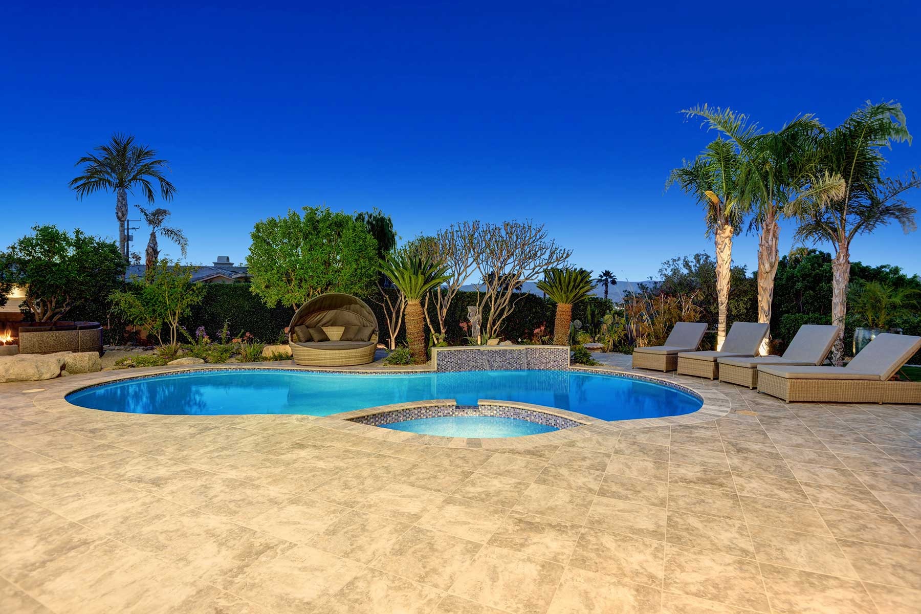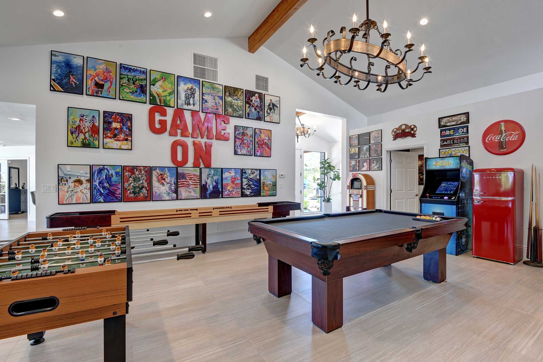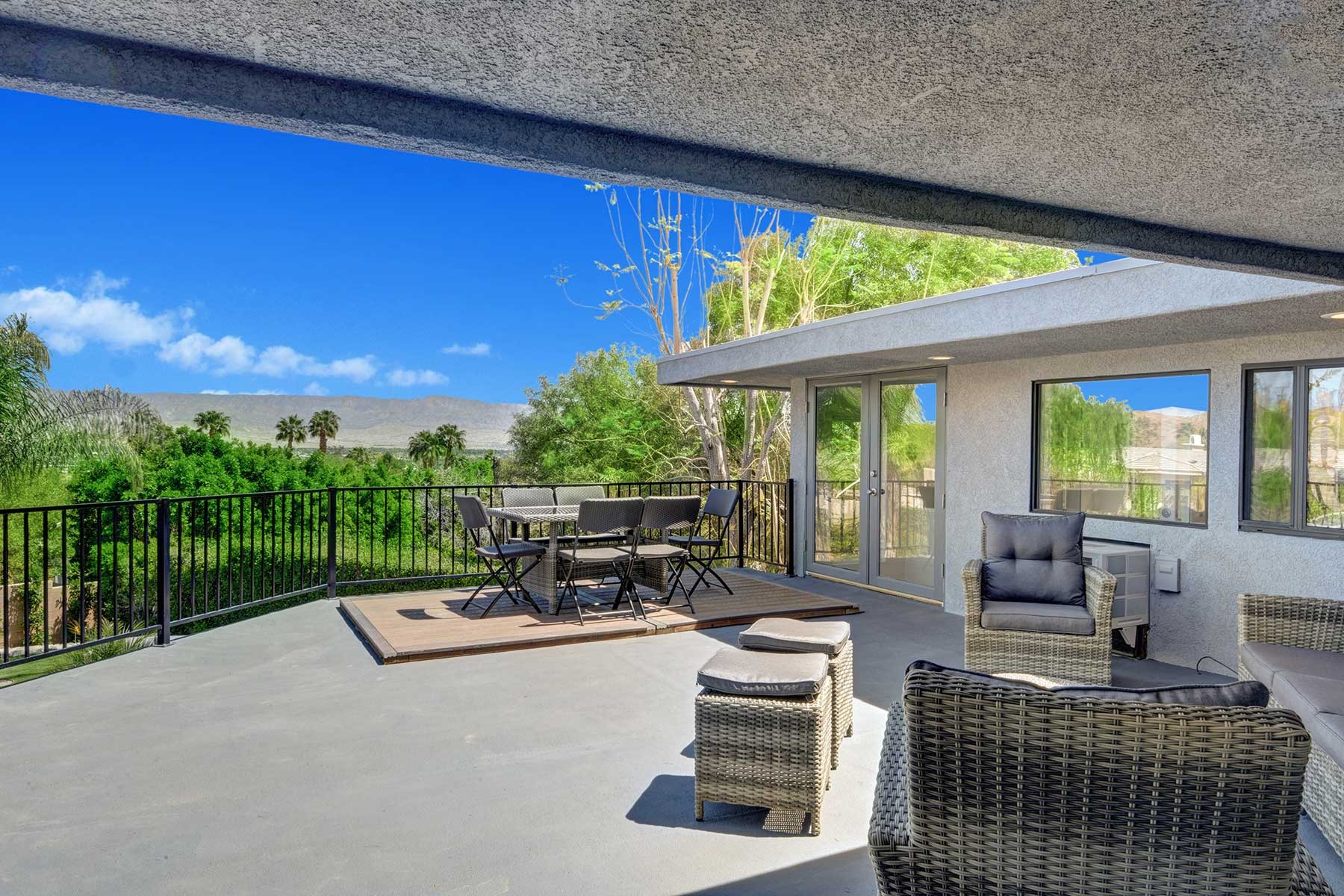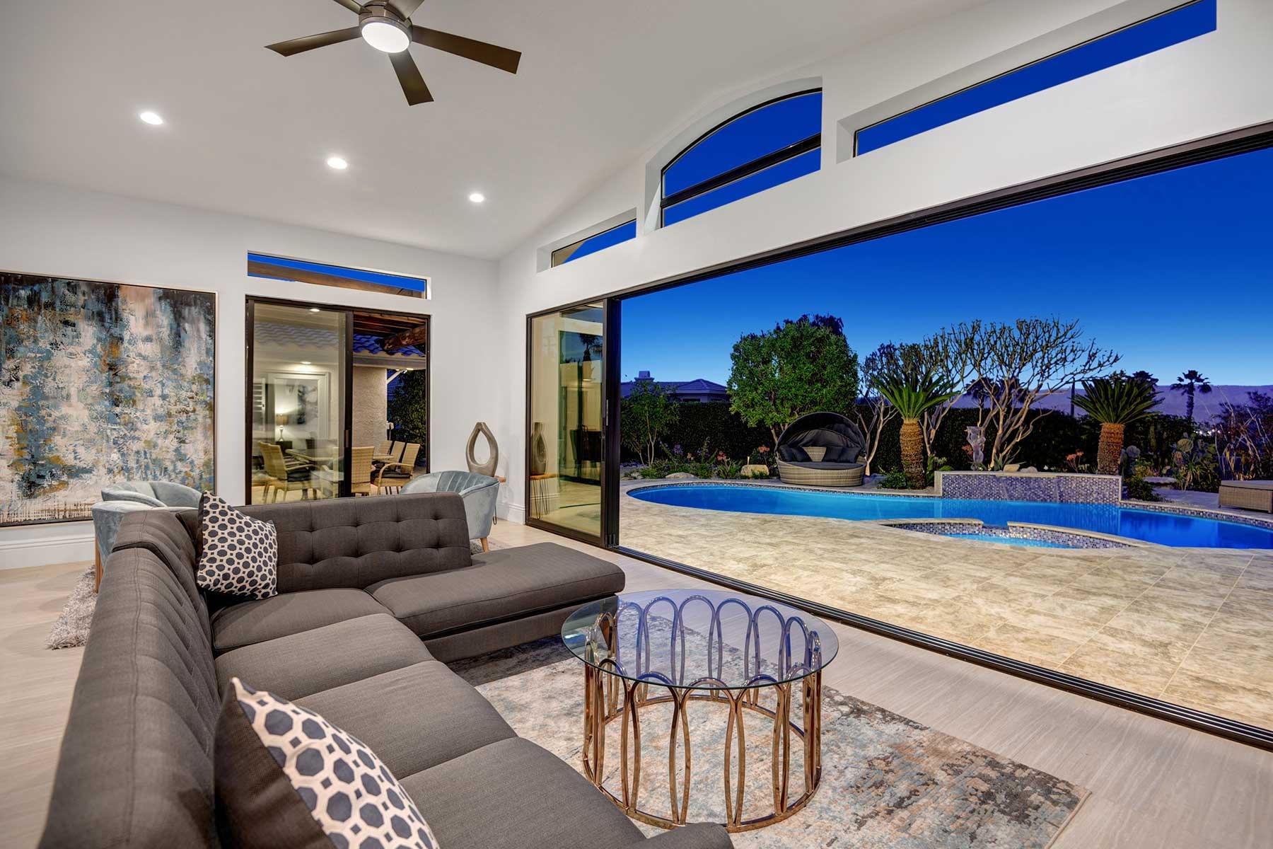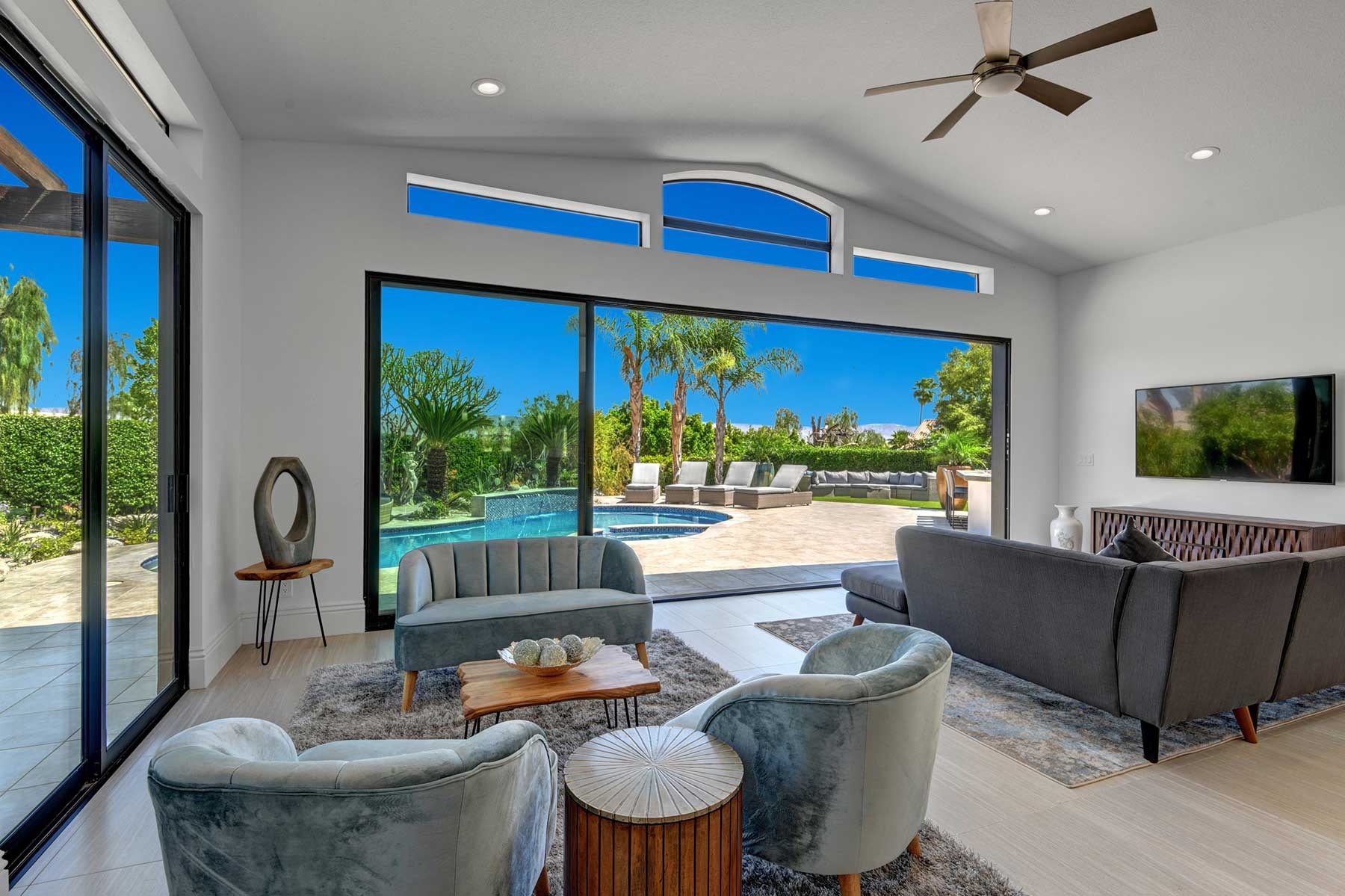 Completely remodeled 5,300 Sq.Ft. Home that has been carefully prepared to make sure you have the best vacations in the desert. Inside of the house you will find six bedrooms, and five baths, media cinema room, game room with arcades which includes pinball, pool table, shuffle board, foosball, chess and bar. Large living room that opens smoothly with a large sliding door to the outdoor pool. An open kitchen with everything you need for small meals or large family meals. House has a second floor with its own casita which includes a full kitchen, living room, bathroom and two queen beds.