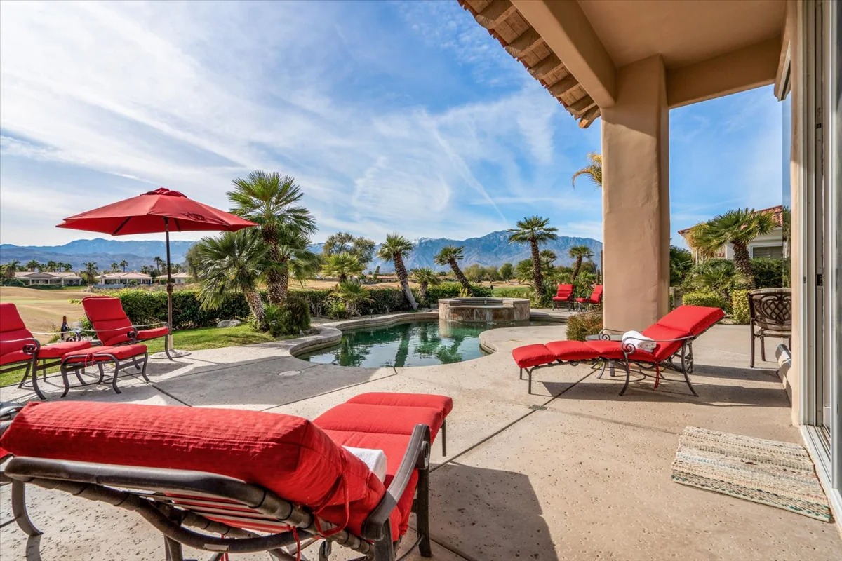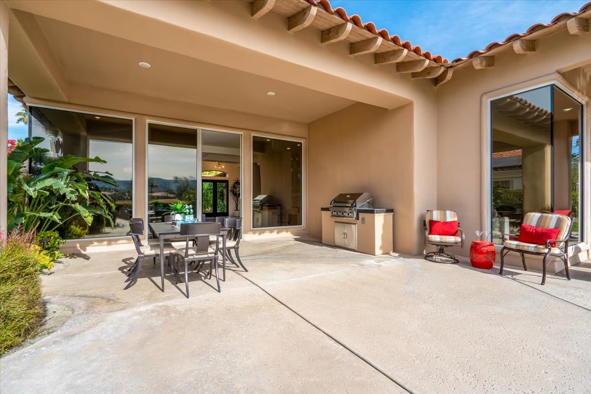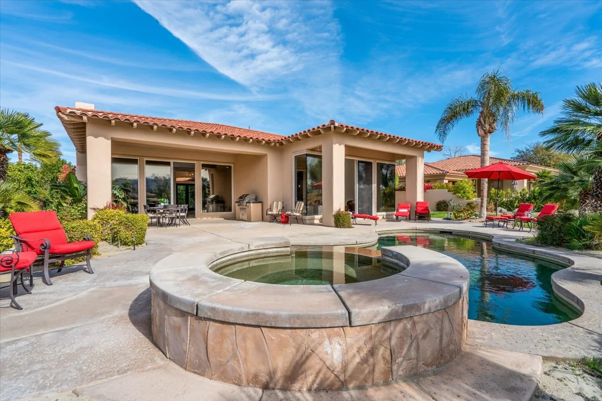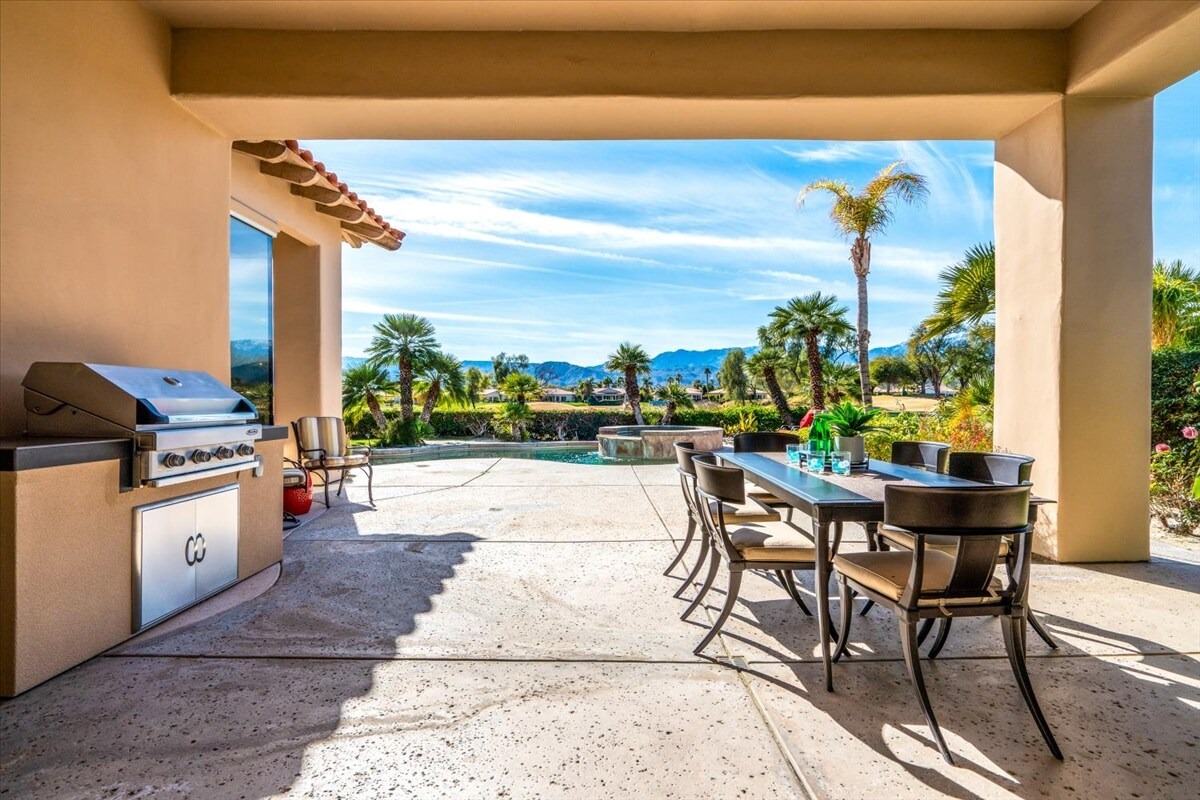 Beautiful home w astonishing views to Golf Course in Mission Hills, one of the most exclusive gated communities in the heart of Rancho Mirage. The house has been fully remodeled! it has a large and sophisticatedly designed kitchen, that along with its indoor and outdoor dining tables,would work perfectly to entertain family and friends. Relax by the pool area in comfortable sun beds while your friends grillyour favorite meal in ourBBQ grill. Get ready foryour best possible vacation inthe Desert.