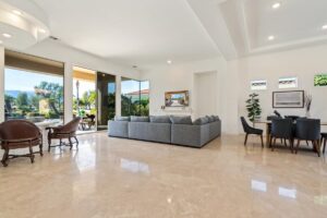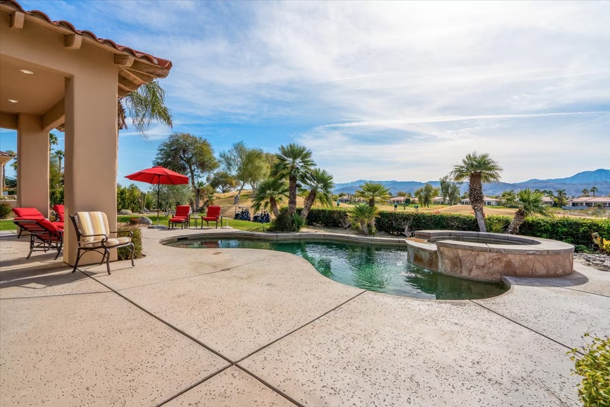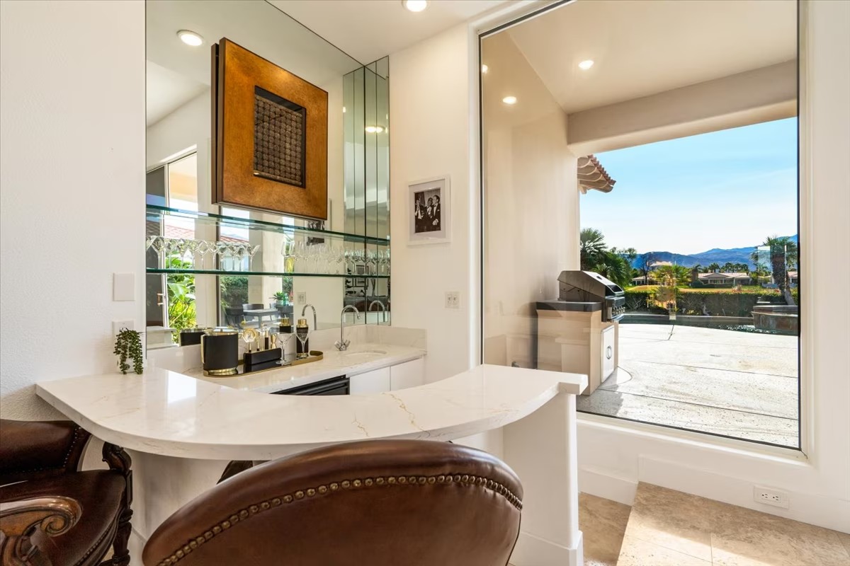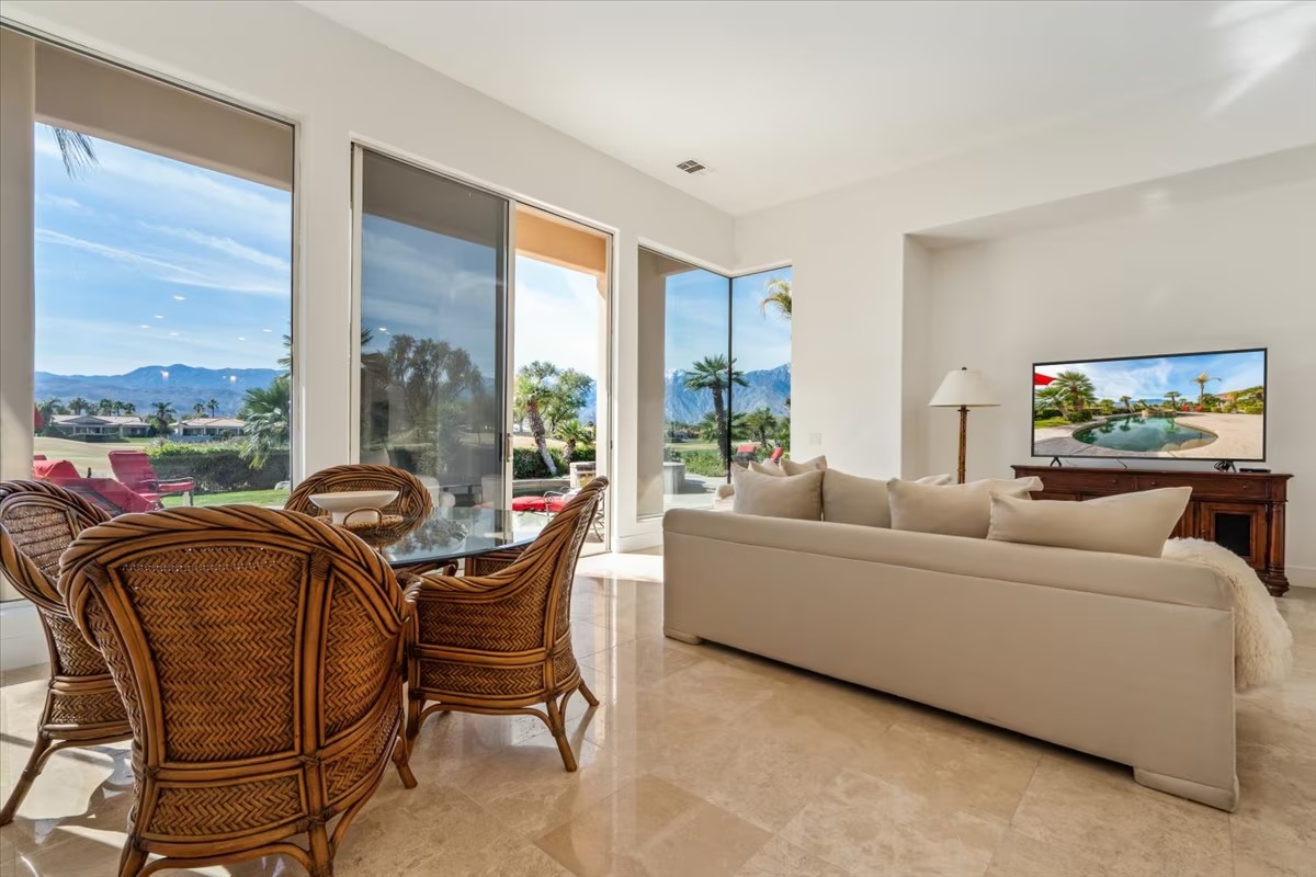 Beautiful home w astonishing views to Golf Course in Mission Hills, one of the most exclusive gated communities in the heart of Rancho Mirage. The house has been fully remodeled! it has a large and sophisticatedly designed kitchen, that along with its indoor and outdoor dining tables,would work perfectly to entertain family and friends. Relax by the pool area in comfortable sun beds while your friends grillyour favorite meal in ourBBQ grill. Get ready foryour best possible vacation inthe Desert.