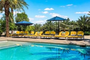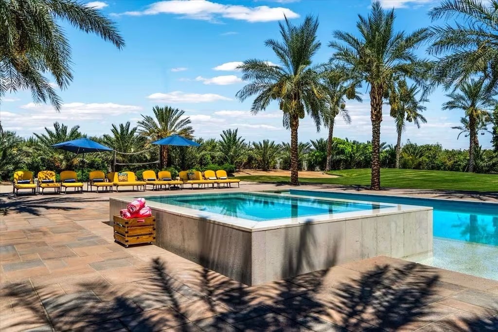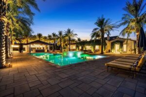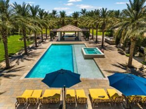 Property Registration Number RVC-0742, 58-006 The Old Polo Estate is a private oasis located on 5 beautiful acres, offering 2 par 3 golf holes, a 1,600 sq ft pool, a beach volleyball court, extensive entertaining areas, and a grassy expanse. All amenities are free and available to our guests. It is just 1 mile from where Coachella Fest, Stagecoach, and Desert Trip are held. The designer compound sleeps 26, with 10 bedrooms, 8 bathrooms, a gourmet kitchen, open great room and a large game room. Compound also includes 2 detached Casitas with a private entrance and full kitchen. The compound has been professionally decorated and well suited to accommodate private/exclusive groups. The compound easily accommodates exclusive corporate events, spectacular weddings, memorable birthday parties. All type of events at the property have a different pricing. Please contact us for more detailed info. Coachella Music Festival – 4 min drive Empire Polo Club – 4 min drive Stagecoach Festival – 4 min drive Augustine Casino – 4 min drive El Dorado Polo Club – 4 min drive Restaurants McDonald’s – 5 min drive La Cazuela Restaurant – 5 min drive Augustine Casino – 4 min drive Starbucks – 3 min drive