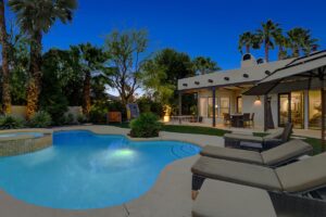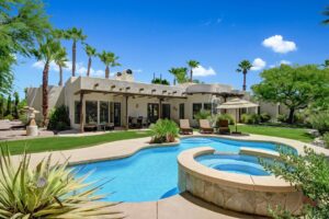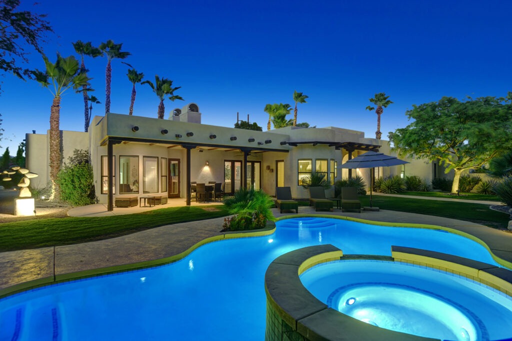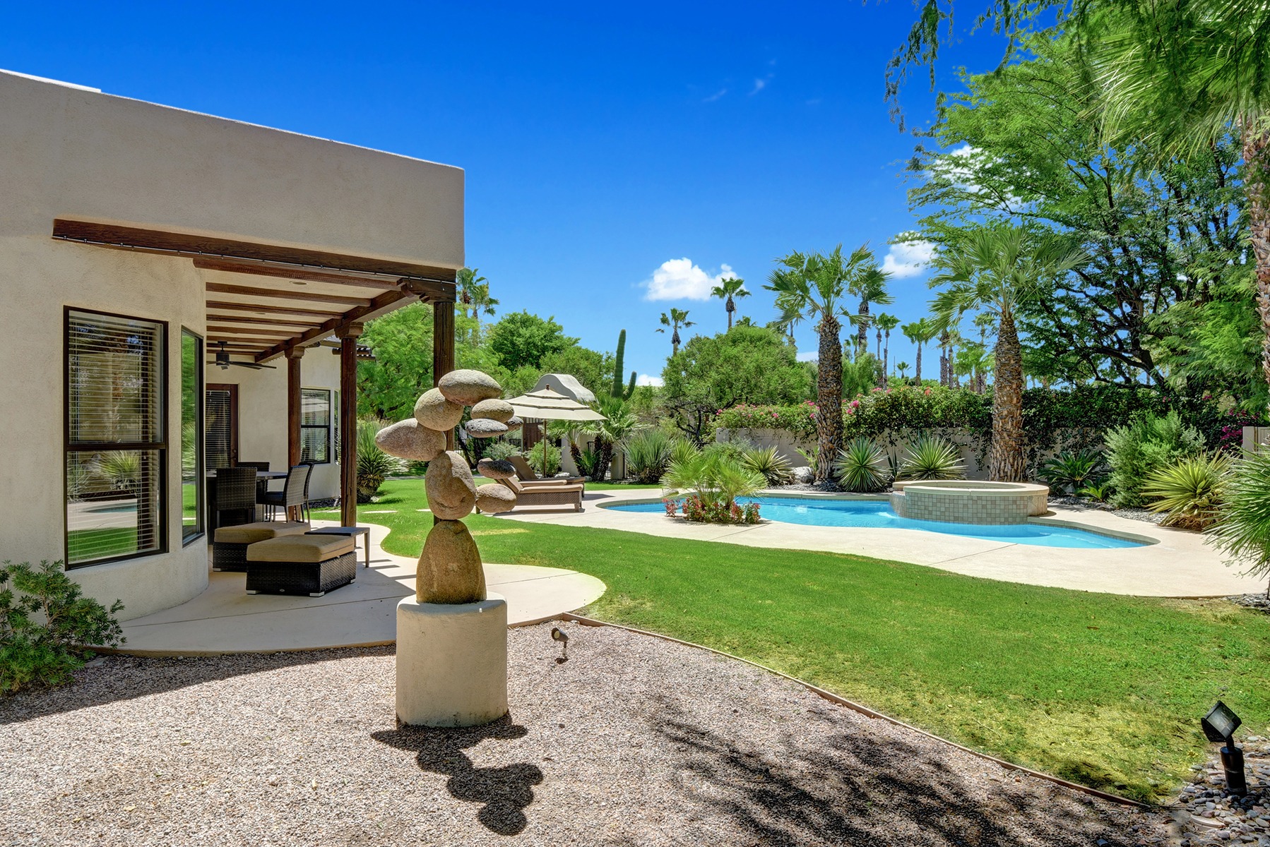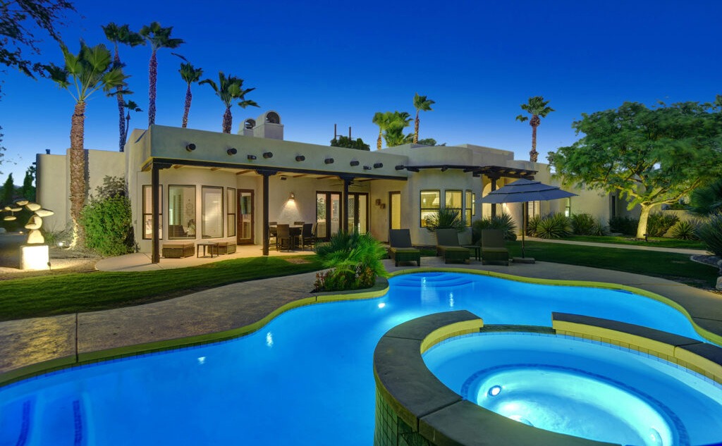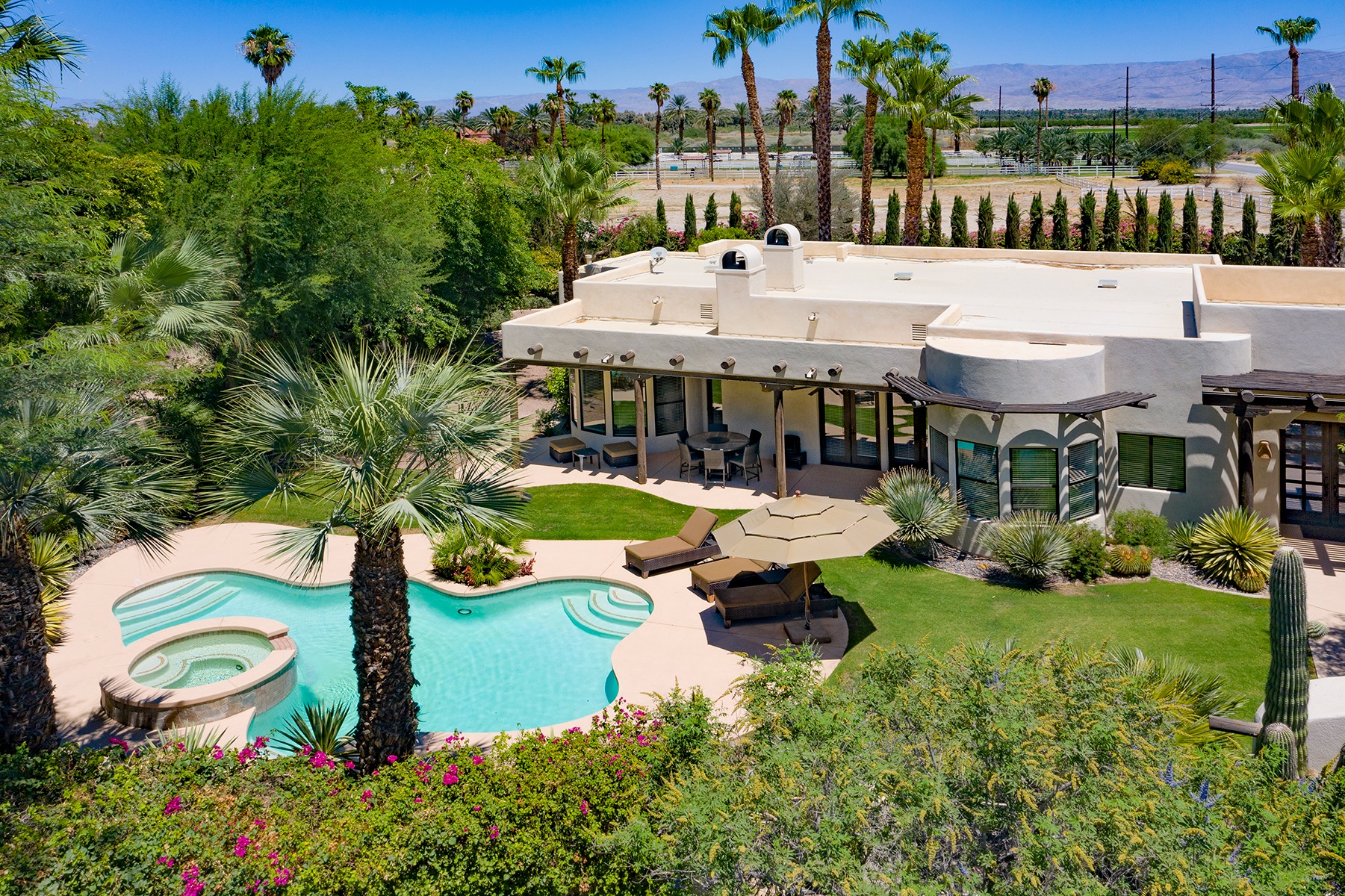 Come and have the best vacation in the desert! The impressive estate will awe your family and friends upon arrival. This estate sits on 1.19 acres and offers endless outdoor activities. Pool & Spa, GYM, incredible game casita, built-in BBQ island, fire pit, ping pong massive outdoor TVprojector, impeccable landscaping, ample dining space all surrounded by the stunning Santa Rosa Mountains.