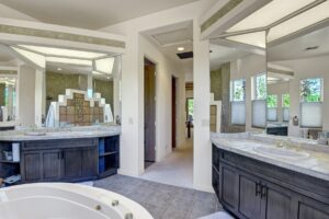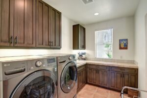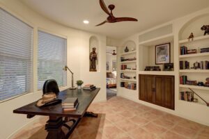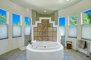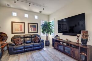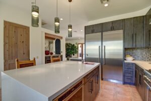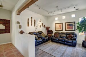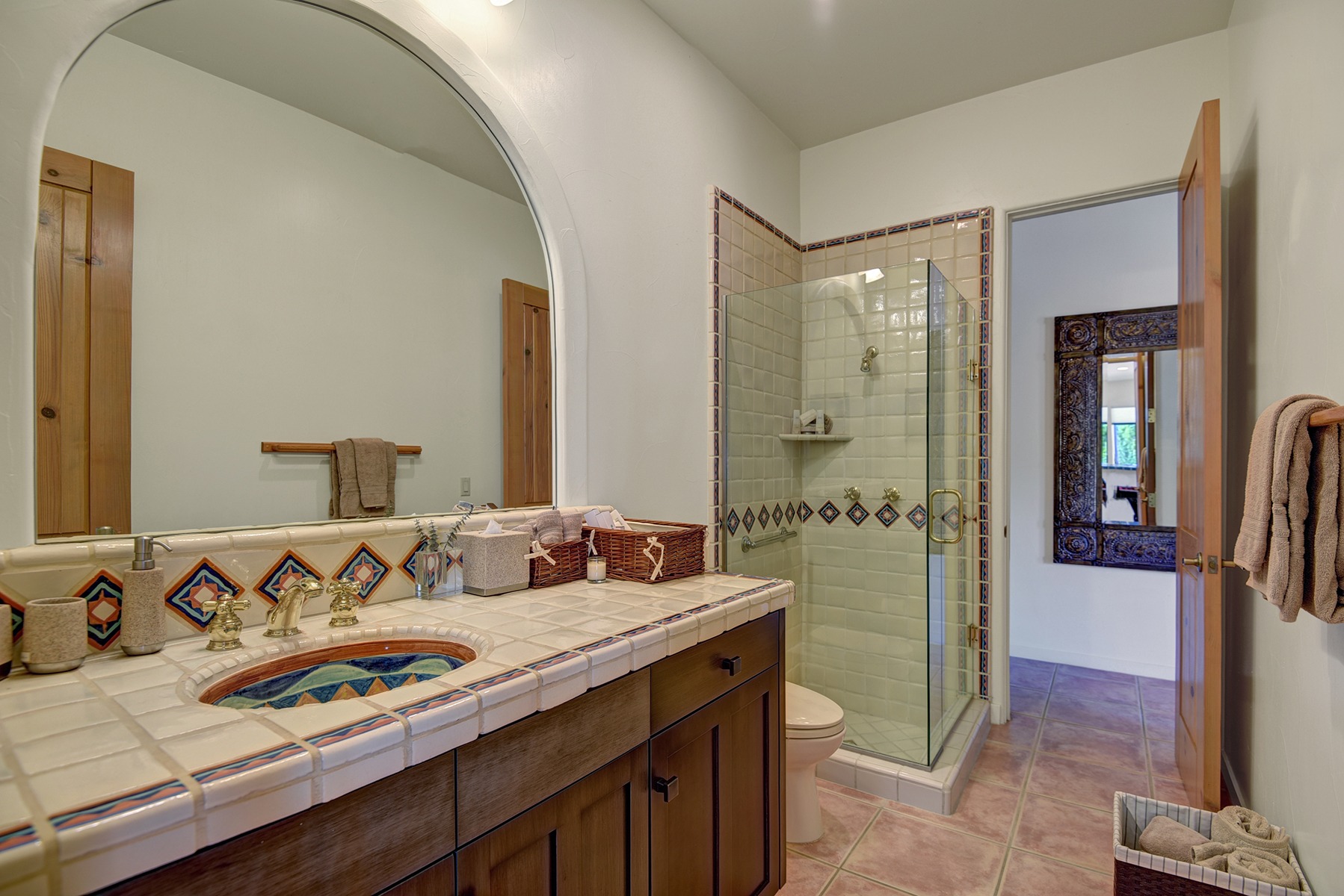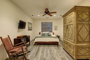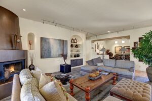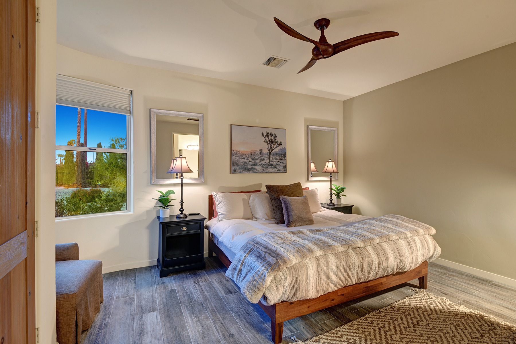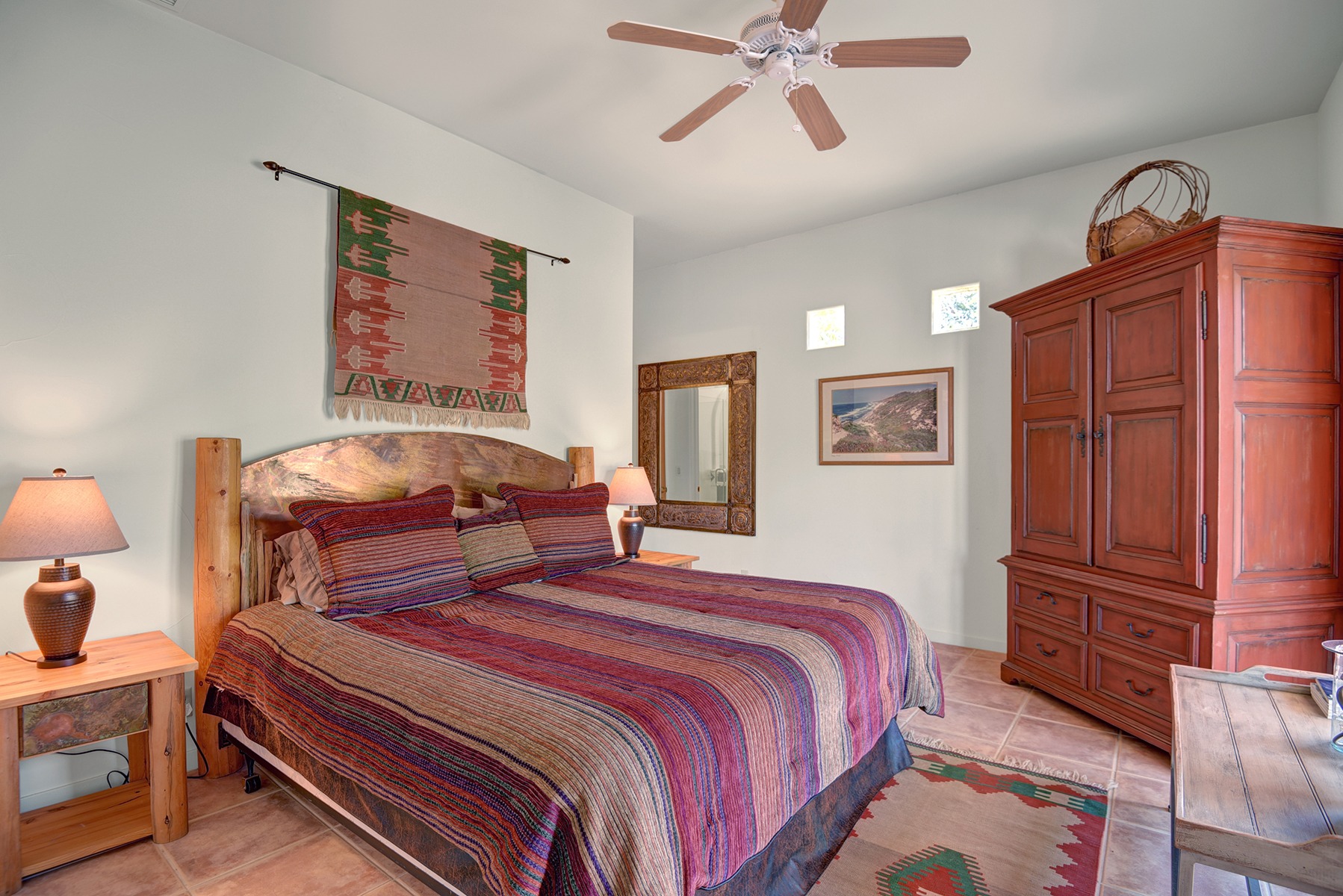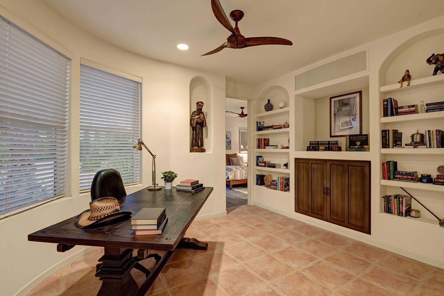 kitchen is beautifully designed with custom cabinetry, quartz countertops, stainless appliances, gas cooktop, copper farm sink & island! The living area offers a Kiva fireplace, wood flooring, french doors and overlooks the den & formal dining room offering additional entertaining space! The primary suite has a sitting area, wood-beamed ceilings, fireplace & direct access to the pool & spa! The primary bath has a jetted tub, walk-in shower, double vanities & walk-in closets! There are 2 guest rooms in the main house both with their own en-suites and an extra bedroom perfect for kids. Your family & friends will love the detached guest house with bar, game area with billiard, bedroom, private bath & large gym!