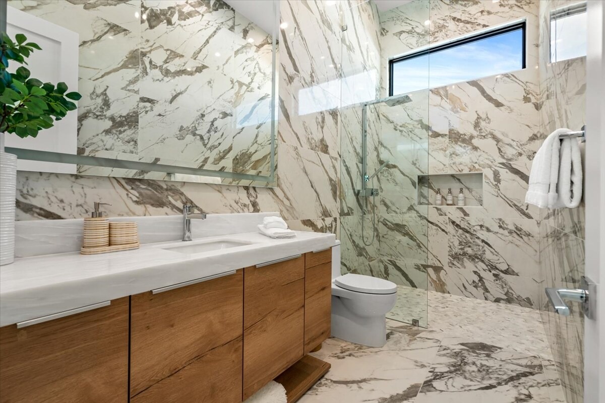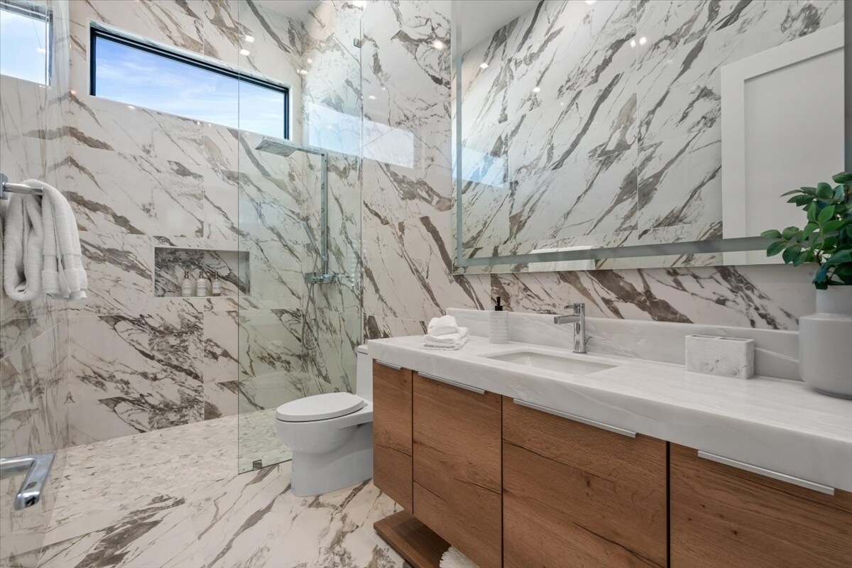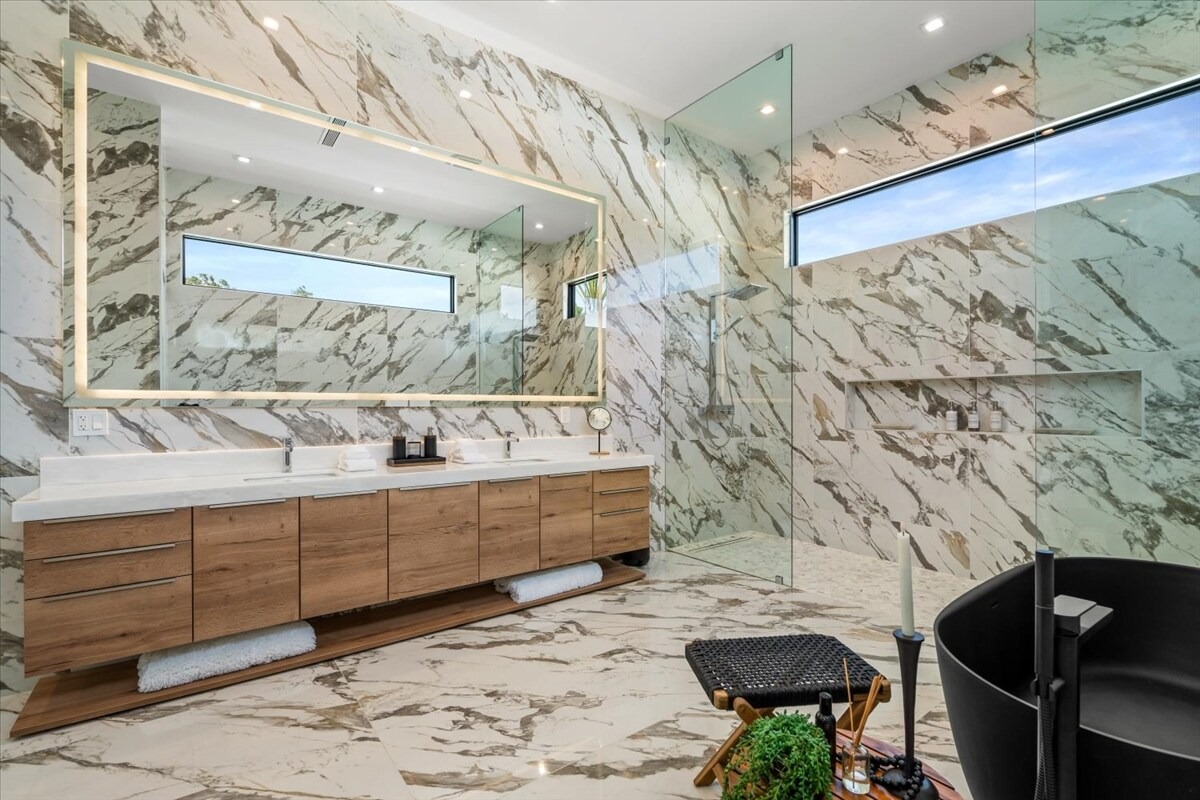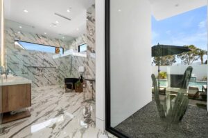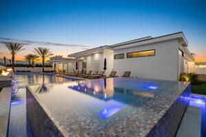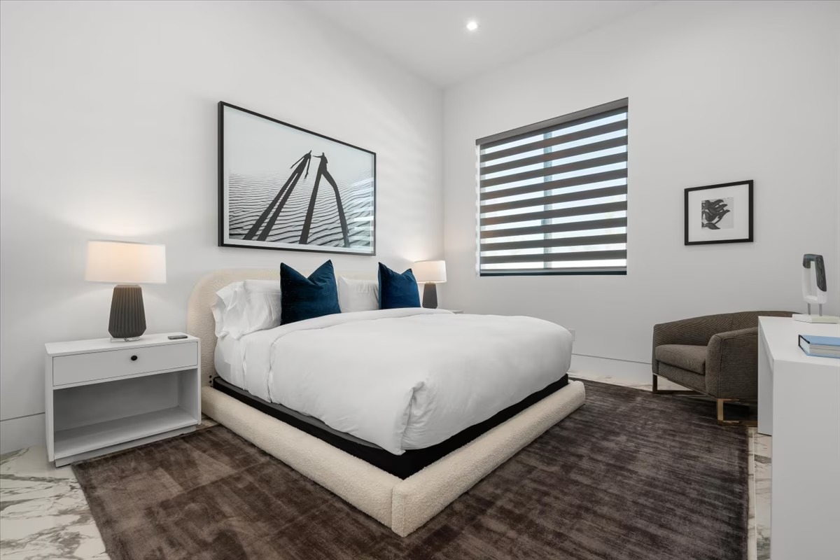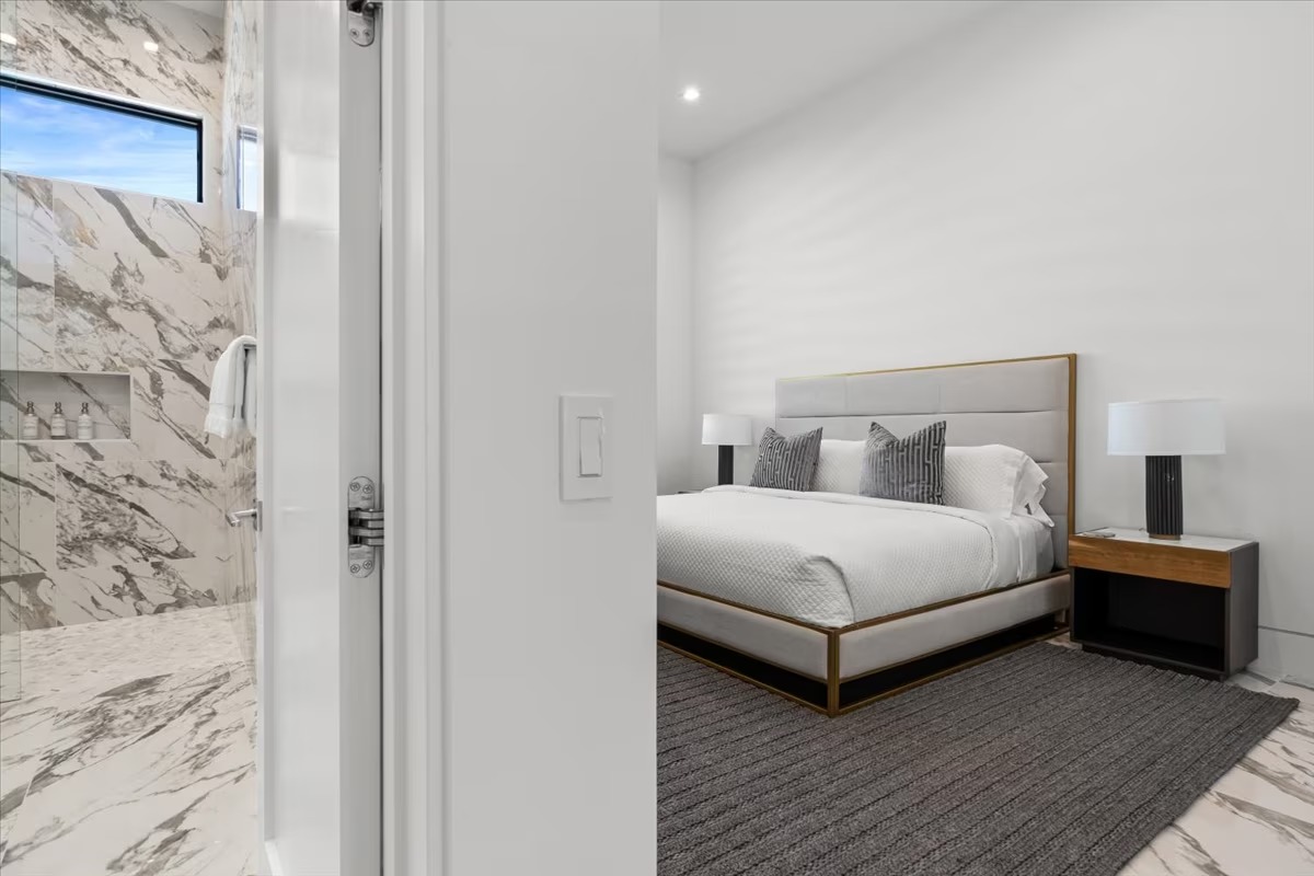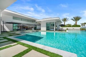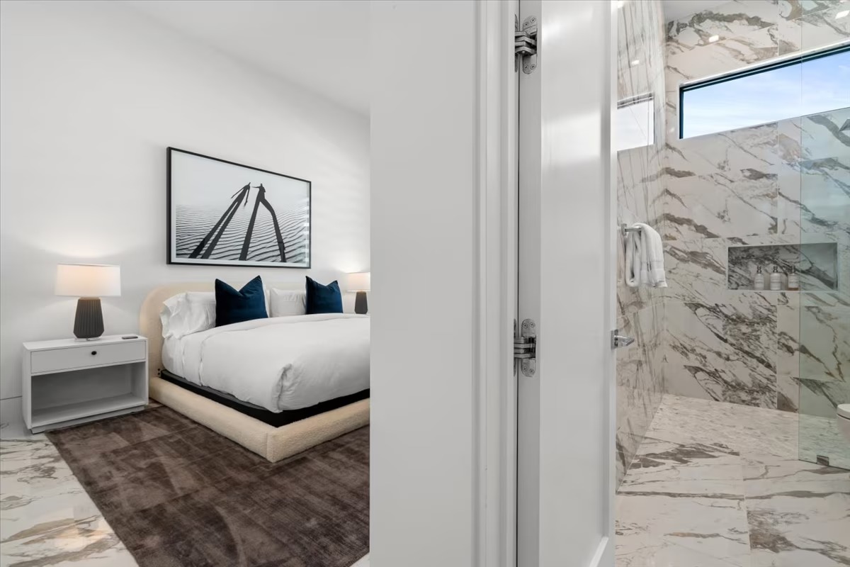 “Outdoor Music Allowed”. Welcome to this ultra-exclusive vacation rental , where this one-of-a-kind residence will exceed all of your expectations while embracing you, your family and your friends with the finest modern architecture and appointments available. Completely unprecedented in the world of short-term-rental properties, the gated community showcases a limited edition of 16 extraordinary residences of uncompromising luxury in a unique village-style enclave all located right across the street from the elegant Madison Club, and just minutes from restaurants and shopping. A massive pool with plenty of features such as very large tanning selves perfect for kids or to lie down in the sun, fire bowls, and LED waterfalls. Chic contemporary style with walls of glass and slideaway Fleetwood doors, oversized great room with 16′ ceilings, 12′ ceilings in other living areas and bedrooms, gorgeous floor tiles imported from Spain, and stunning open kitchens with European cabinetry and top-of-the-line Miele appliances. Every bedroom is a suite, complete with a private bath and large closet. Primary suites elevate personal luxury to new heights, with outdoor access, walk-in multi-head showers, freestanding tubs, and oversized walk-in closets with Italian-made custom built-ins. Enjoy the beauty of modern lighting, contemporary artwork, chic furnishings, Grohe plumbing fixtures and pivoting glass entry doors. Landscaping is impeccable and upscale, and select residences feature putting greens, fire bowls and fountains. Enviable location right next to the private communities of The Madison Club, The Citrus Club and Hideaway Golf Club makes it easy for guests to walk or bike to concerts, shops and restaurants. The Indian Wells Tennis Garden, high-end shopping on El Paseo, abundant recreation, and Palm Springs International Airport are all within easy reach. The ultimate luxury vacation awaits! Book your unforgettable stay today!