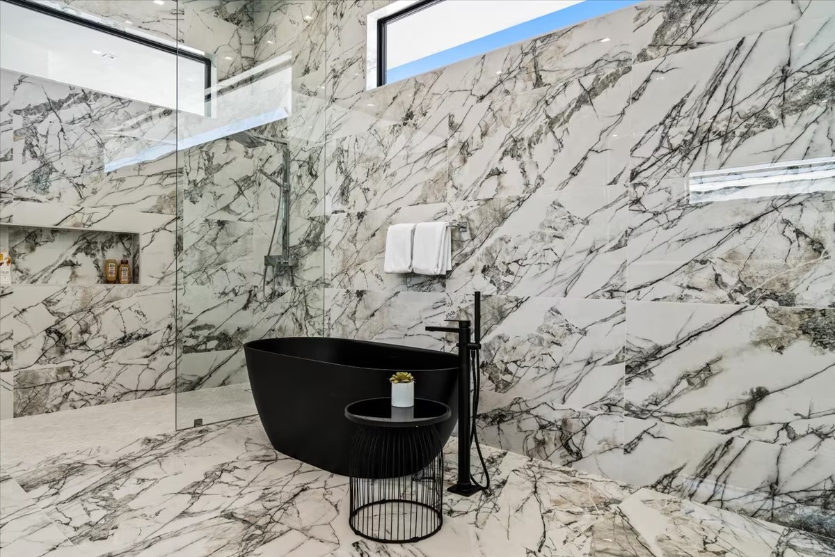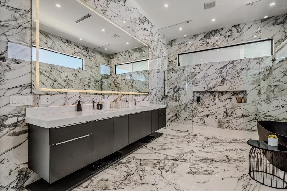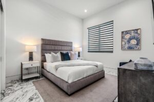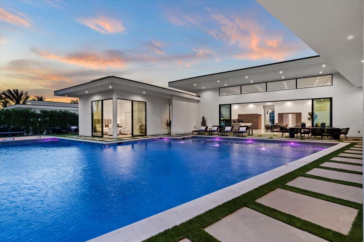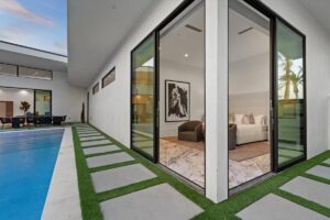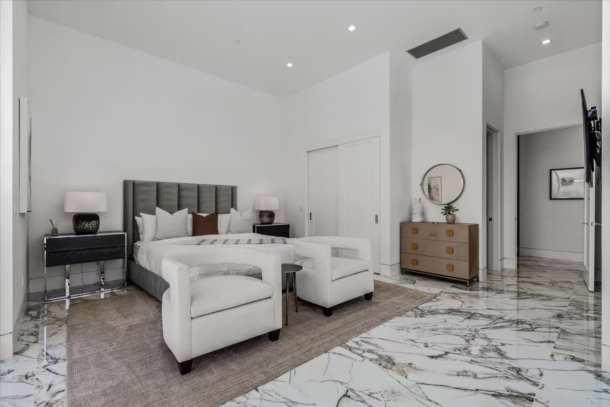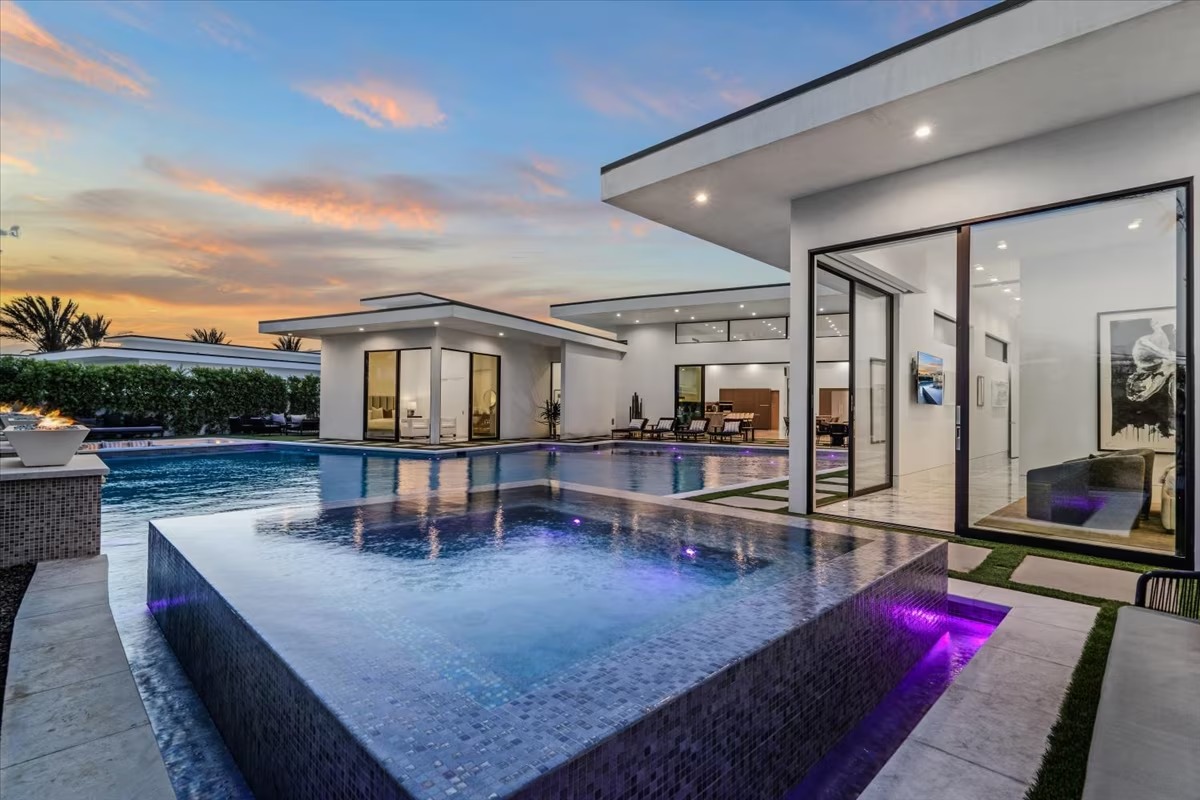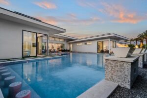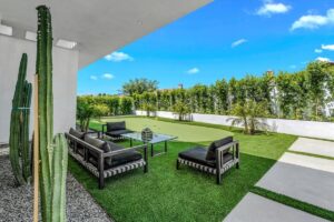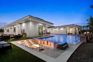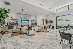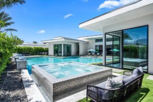 “Outdoor Music Allowed”. Welcome to this ultra-exclusive vacation rental , where this one-of-a-kind residence will exceed all of your expectations while embracing you, your family and your friends with the finest modern architecture and appointments available. Completely unprecedented in the world of short-term-rental properties, the gated community showcases a limited edition of 16 extraordinary residences of uncompromising luxury in a unique village-style enclave all located right across the street from the elegant Madison Club, and just minutes from restaurants and shopping. A massive pool with plenty of features such as very large tanning selves perfect for kids or to lie down in the sun, fire bowls, and LED waterfalls. Chic contemporary style with walls of glass and slideaway Fleetwood doors, oversized great room with 16′ ceilings, 12′ ceilings in other living areas and bedrooms, gorgeous floor tiles imported from Spain, and stunning open kitchens with European cabinetry and top-of-the-line Miele appliances. Every bedroom is a suite, complete with a private bath and large closet. Primary suites elevate personal luxury to new heights, with outdoor access, walk-in multi-head showers, freestanding tubs, and oversized walk-in closets with Italian-made custom built-ins. Enjoy the beauty of modern lighting, contemporary artwork, chic furnishings, Grohe plumbing fixtures and pivoting glass entry doors. Landscaping is impeccable and upscale, and select residences feature putting greens, fire bowls and fountains. Enviable location right next to the private communities of The Madison Club, The Citrus Club and Hideaway Golf Club makes it easy for guests to walk or bike to concerts, shops and restaurants. The Indian Wells Tennis Garden, high-end shopping on El Paseo, abundant recreation, and Palm Springs International Airport are all within easy reach. The ultimate luxury vacation awaits! Book your unforgettable stay today!