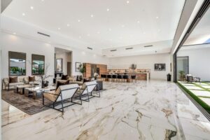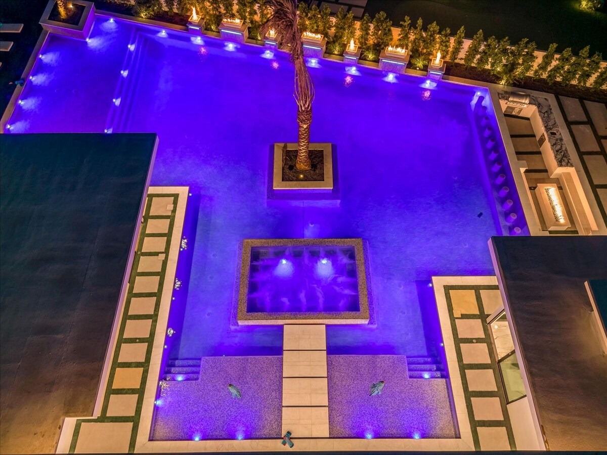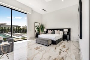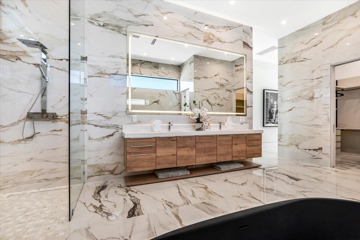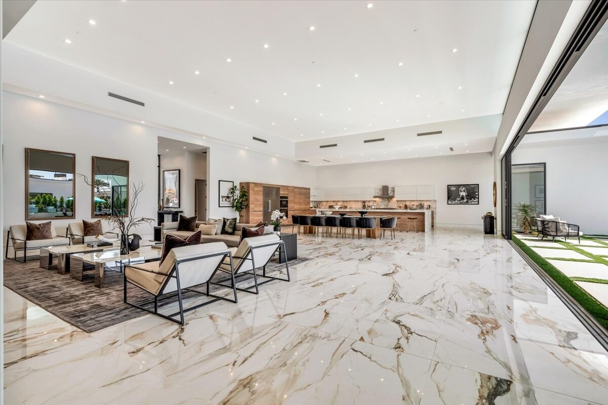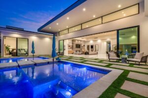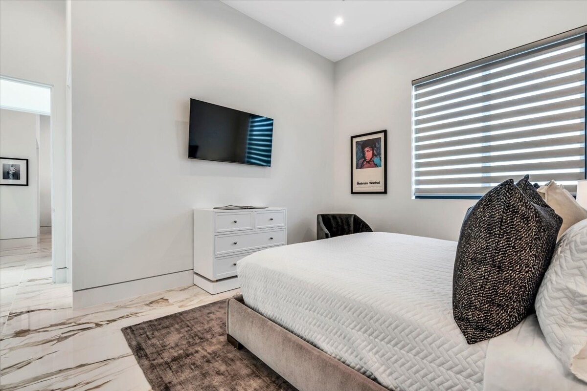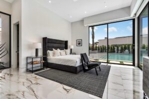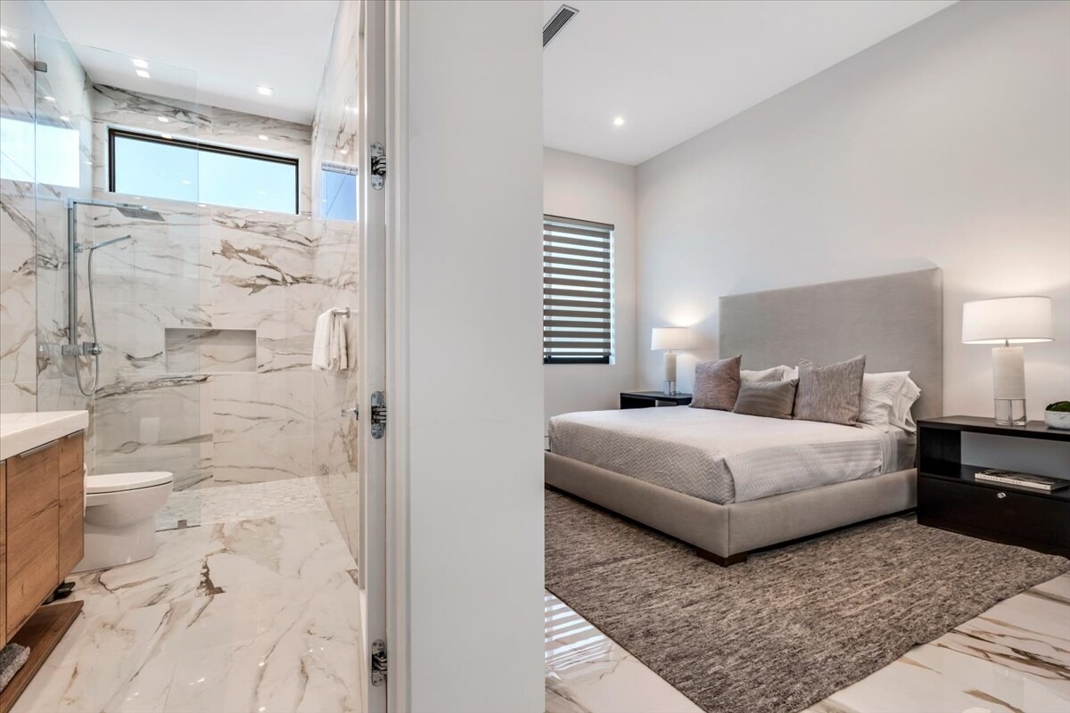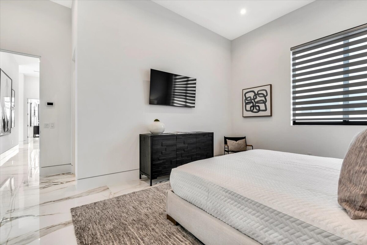 “Outdoor Music Allowed”. Welcome to this ultra-exclusive vacation rental , where this one-of-a-kind residence will exceed all of your expectations while embracing you, your family and your friends with the finest modern architecture and appointments available. Completely unprecedented in the world of short-term-rental properties, the gated community showcases a limited edition of 16 extraordinary residences of uncompromising luxury in a unique village-style enclave all located right across the street from the elegant Madison Club, and just minutes from restaurants and shopping. A massive pool with plenty of features such as very large tanning selves perfect for kids or to lie down in the sun, fire bowls, and LED waterfalls. Chic contemporary style with walls of glass and slideaway Fleetwood doors, oversized great room with 16′ ceilings, 12′ ceilings in other living areas and bedrooms, gorgeous floor tiles imported from Spain, and stunning open kitchens with European cabinetry and top-of-the-line Miele appliances. Every bedroom is a suite, complete with a private bath and large closet. Primary suites elevate personal luxury to new heights, with outdoor access, walk-in multi-head showers, freestanding tubs, and oversized walk-in closets with Italian-made custom built-ins. Enjoy the beauty of modern lighting, contemporary artwork, chic furnishings, Grohe plumbing fixtures and pivoting glass entry doors. Landscaping is impeccable and upscale, and select residences feature putting greens, fire bowls and fountains. Enviable location right next to the private communities of The Madison Club, The Citrus Club and Hideaway Golf Club makes it easy for guests to walk or bike to concerts, shops and restaurants. The Indian Wells Tennis Garden, high-end shopping on El Paseo, abundant recreation, and Palm Springs International Airport are all within easy reach. The ultimate luxury vacation awaits! Book your unforgettable stay today!