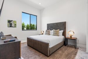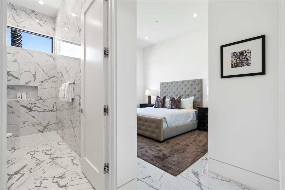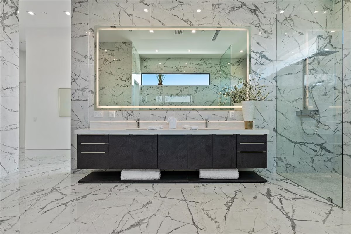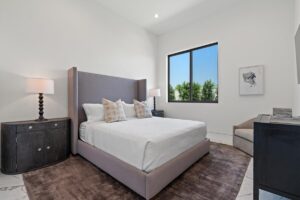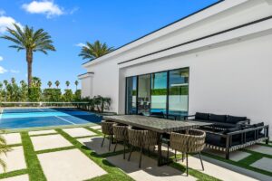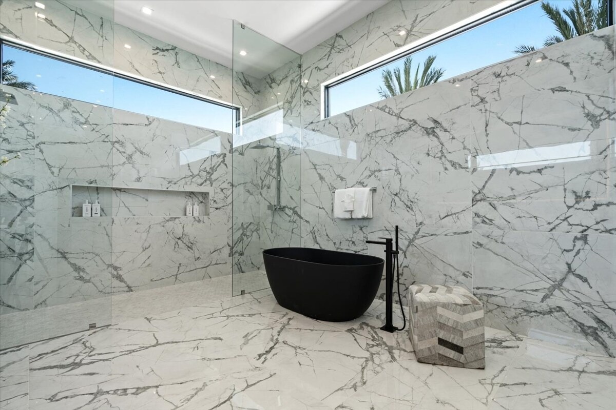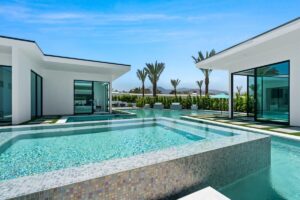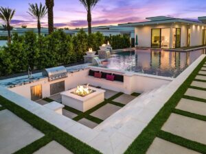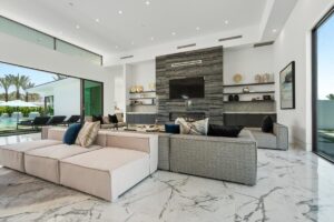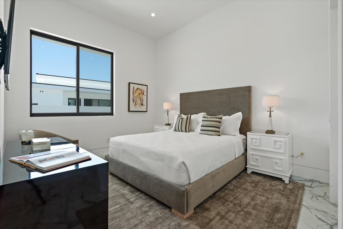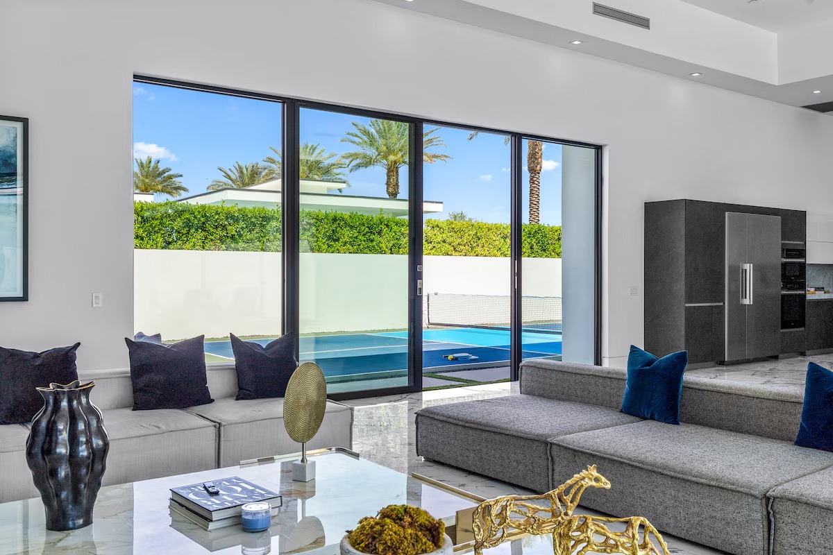 “Outdoor Music Allowed”. Welcome to this ultra-exclusive vacation rental , where this one-of-a-kind residence will exceed all of your expectations while embracing you, your family and your friends with the finest modern architecture and appointments available. Completely unprecedented in the world of short-term-rental properties, the gated community showcases a limited edition of 16 extraordinary residences of uncompromising luxury in a unique village-style enclave all located right across the street from the elegant Madison Club, and just minutes from restaurants and shopping. A massive pool with plenty of features such as very large tanning selves perfect for kids or to lie down in the sun, fire bowls, and LED waterfalls. Chic contemporary style with walls of glass and slideaway Fleetwood doors, oversized great room with 16′ ceilings, 12′ ceilings in other living areas and bedrooms, gorgeous floor tiles imported from Spain, and stunning open kitchens with European cabinetry and top-of-the-line Miele appliances. Every bedroom is a suite, complete with a private bath and large closet. Primary suites elevate personal luxury to new heights, with outdoor access, walk-in multi-head showers, freestanding tubs, and oversized walk-in closets with Italian-made custom built-ins. Enjoy the beauty of modern lighting, contemporary artwork, chic furnishings, Grohe plumbing fixtures and pivoting glass entry doors. Landscaping is impeccable and upscale, and select residences feature putting greens, fire bowls and fountains. Enviable location right next to the private communities of The Madison Club, The Citrus Club and Hideaway Golf Club makes it easy for guests to walk or bike to concerts, shops and restaurants. The Indian Wells Tennis Garden, high-end shopping on El Paseo, abundant recreation, and Palm Springs International Airport are all within easy reach. The ultimate luxury vacation awaits! Book your unforgettable stay today!