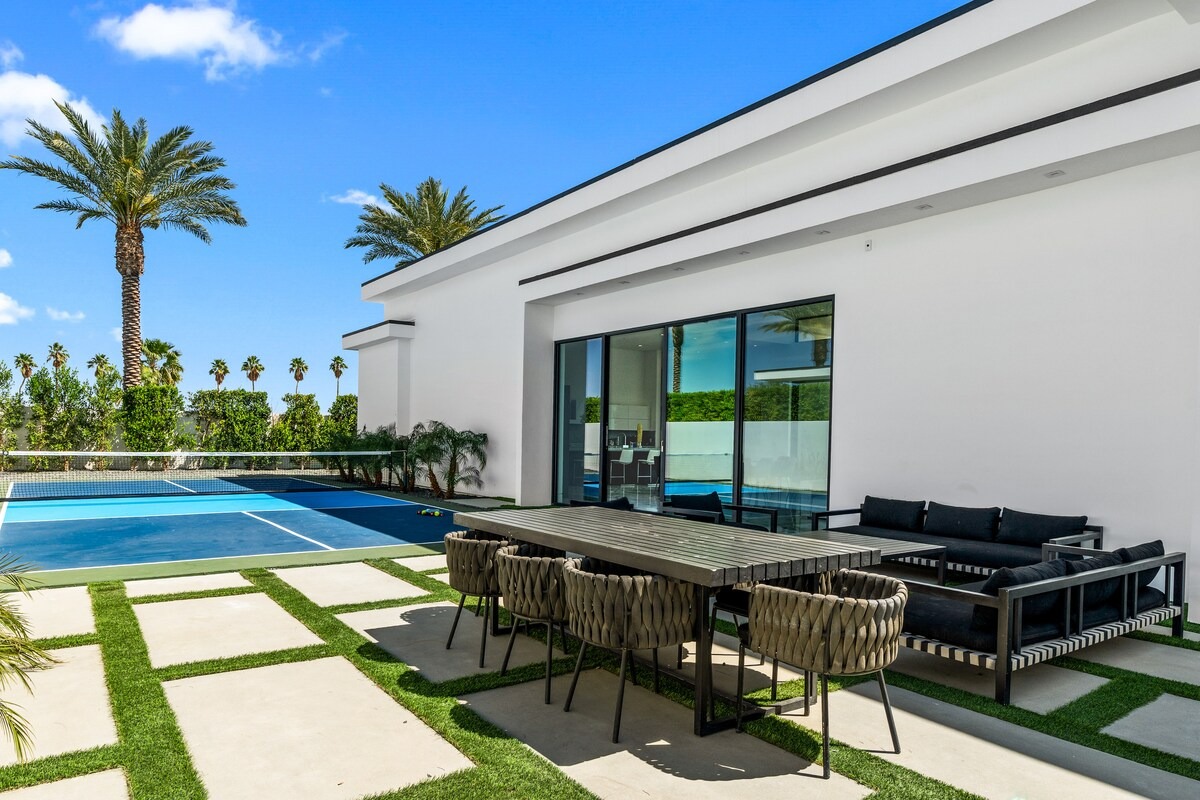 Adjacent to La Quinta and next to the world renown Madison Club and Hideaway, this one-of-a-kind vacation rental will exceed all of your expectations. Completely unprecedented in the world of vacation rentals, the gated community showcases a limited edition of 16 extraordinary residences of uncompromising luxury. Massive custom swimming pool and spa, Private Pickleball Court, sunken fire pit, putting green, Villa 7- 8 bedrooms all en-suite bathrooms.