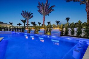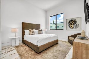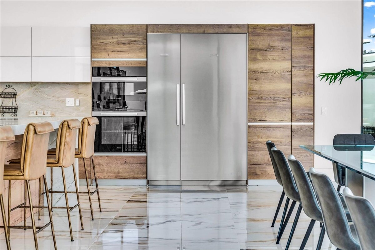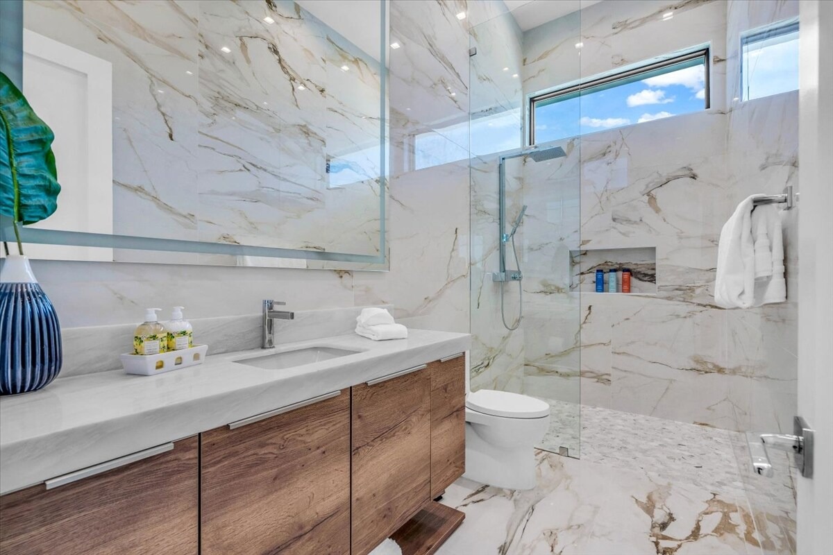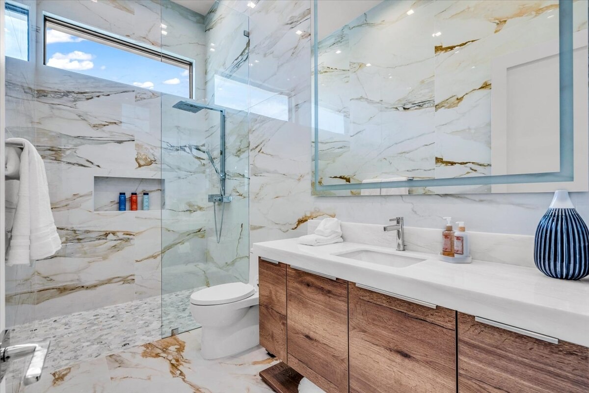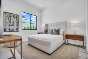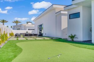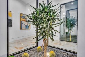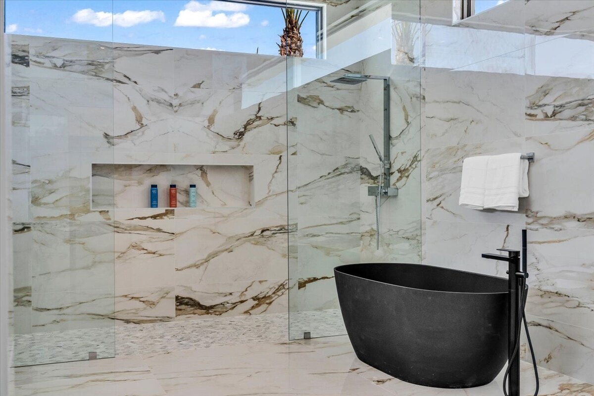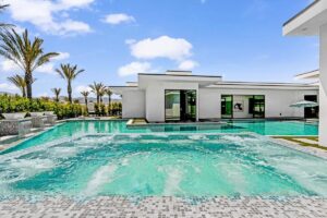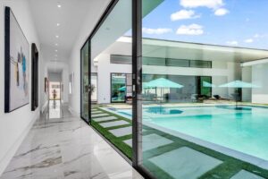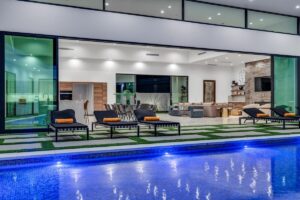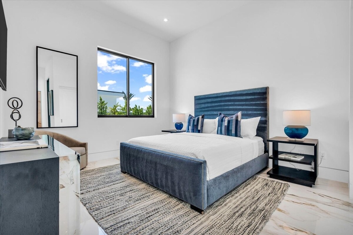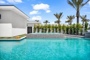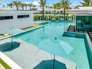 “Outdoor Music Allowed”. Welcome to this ultra-exclusive vacation rental , where this one-of-a-kind residence will exceed all of your expectations while embracing you, your family and your friends with the finest modern architecture and appointments available. Completely unprecedented in the world of short-term-rental properties, the gated community showcases a limited edition of 16 extraordinary residences of uncompromising luxury in a unique village-style enclave all located right across the street from the elegant Madison Club, and just minutes from restaurants and shopping. A massive pool with plenty of features such as very large tanning selves perfect for kids or to lie down in the sun, fire bowls, and LED waterfalls. Chic contemporary style with walls of glass and slideaway Fleetwood doors, oversized great room with 16′ ceilings, 12′ ceilings in other living areas and bedrooms, gorgeous floor tiles imported from Spain, and stunning open kitchens with European cabinetry and top-of-the-line Miele appliances. Every bedroom is a suite, complete with a private bath and large closet. Primary suites elevate personal luxury to new heights, with outdoor access, walk-in multi-head showers, freestanding tubs, and oversized walk-in closets with Italian-made custom built-ins. Enjoy the beauty of modern lighting, contemporary artwork, chic furnishings, Grohe plumbing fixtures and pivoting glass entry doors. Landscaping is impeccable and upscale, and select residences feature putting greens, fire bowls and fountains. Enviable location right next to the private communities of The Madison Club, The Citrus Club and Hideaway Golf Club makes it easy for guests to walk or bike to concerts, shops and restaurants. The Indian Wells Tennis Garden, high-end shopping on El Paseo, abundant recreation, and Palm Springs International Airport are all within easy reach. The ultimate luxury vacation awaits! Book your unforgettable stay today!