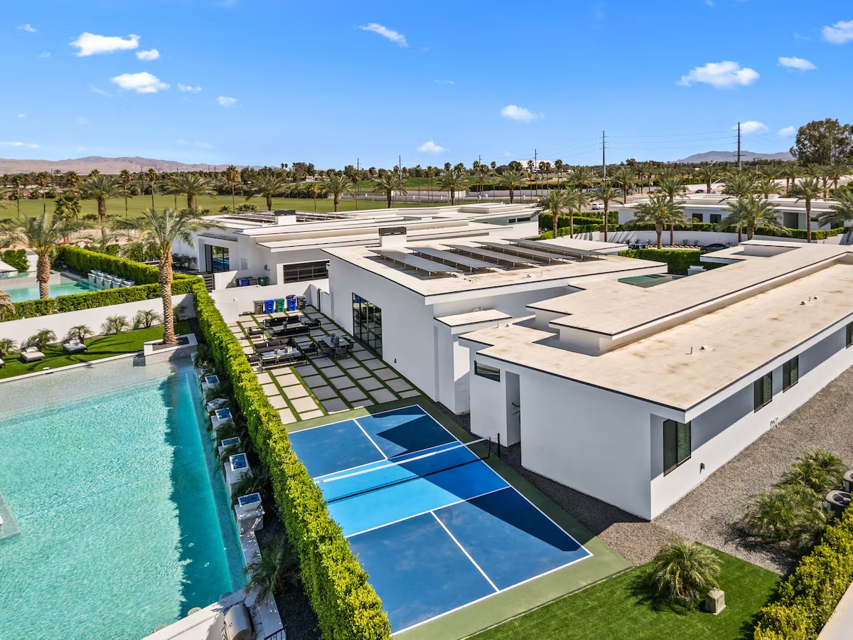 Adjacent to La Quinta and next to the world renown Madison Club and Hideaway, this one-of-a-kind vacation rental will exceed all of your expectations. Completely unprecedented in the world of vacation rentals, the gated community showcases a limited edition of 16 extraordinary residences of uncompromising luxury. Massive custom swimming pool and spa, Private Pickleball Court, sunken fire pit, Villa 8- 6 bedrooms all en-suite bathrooms.
