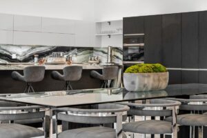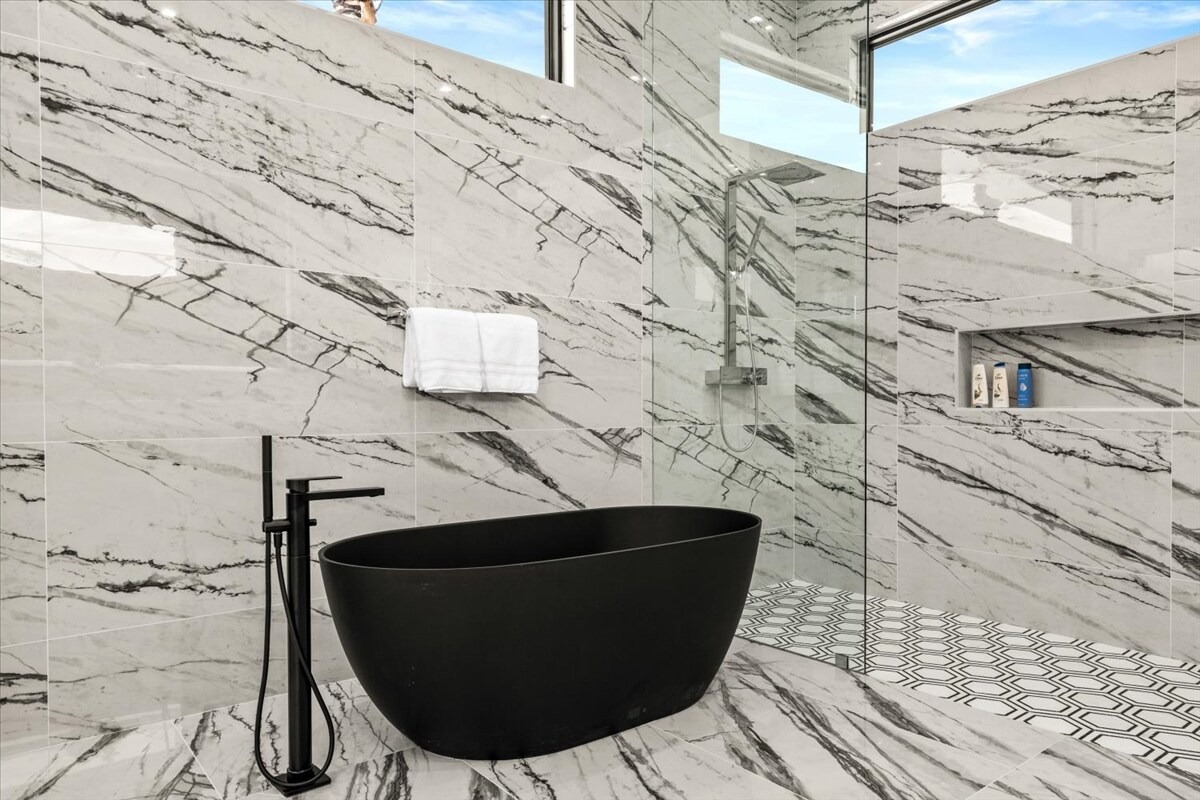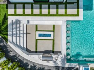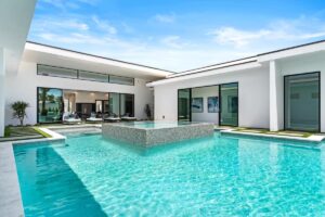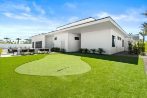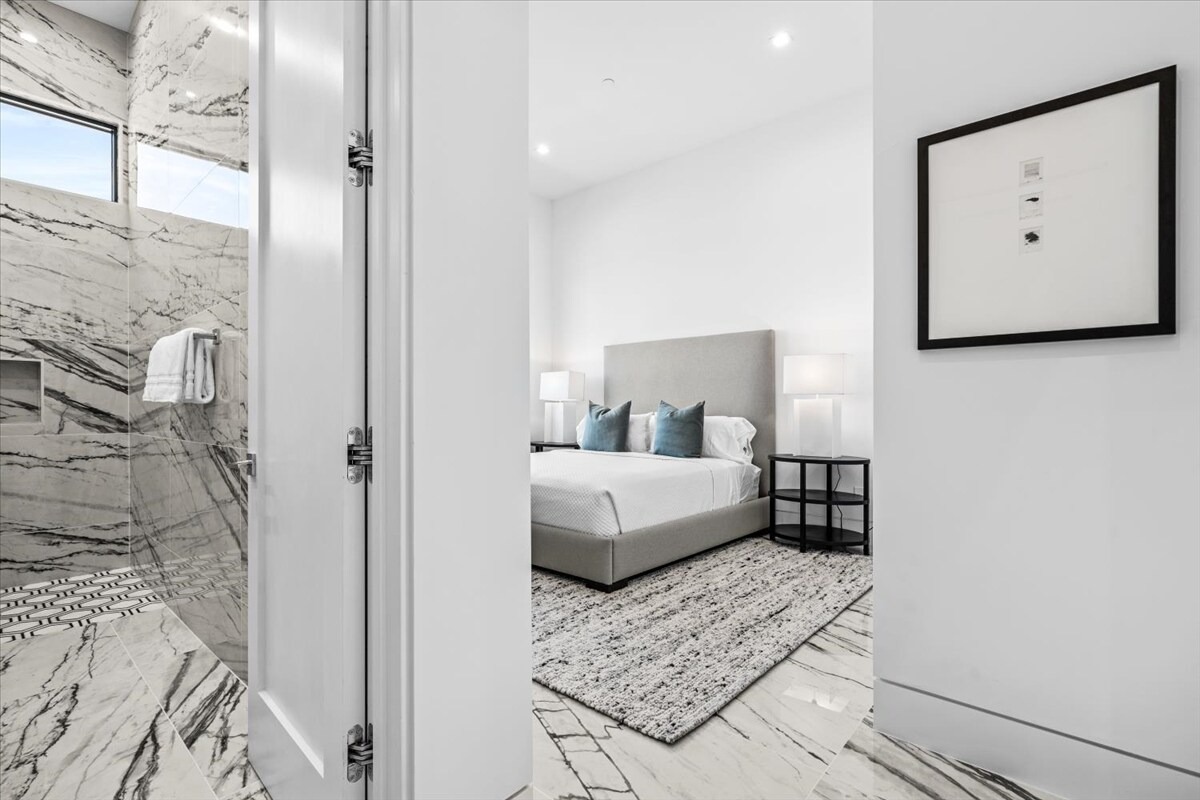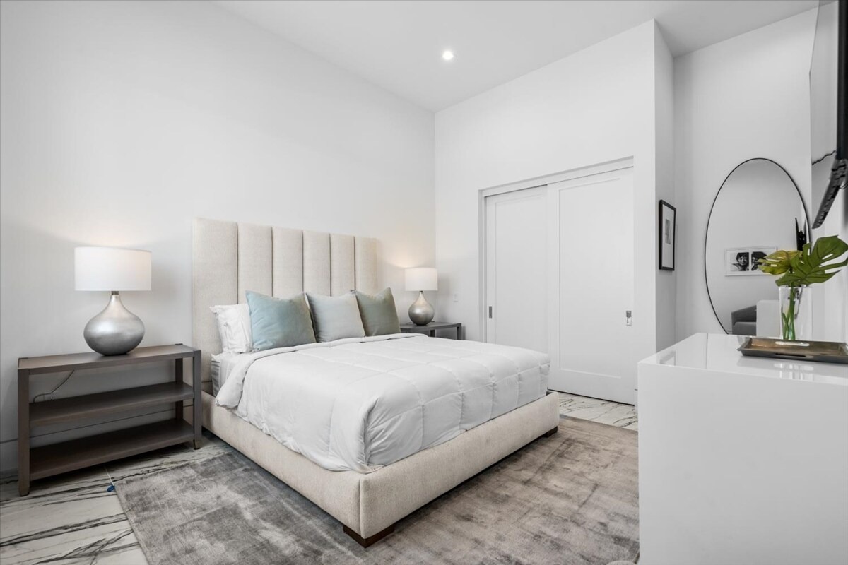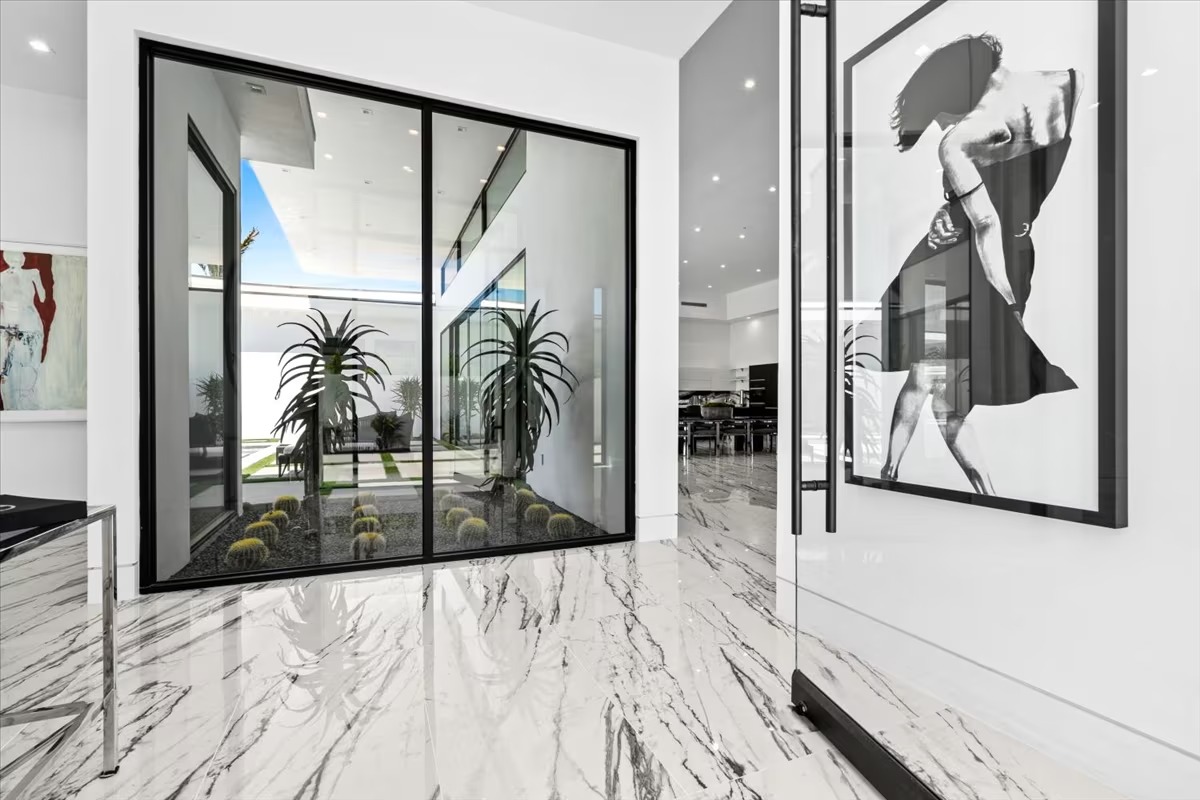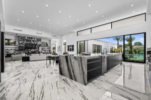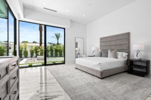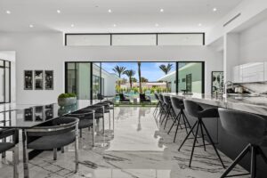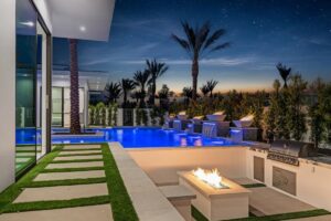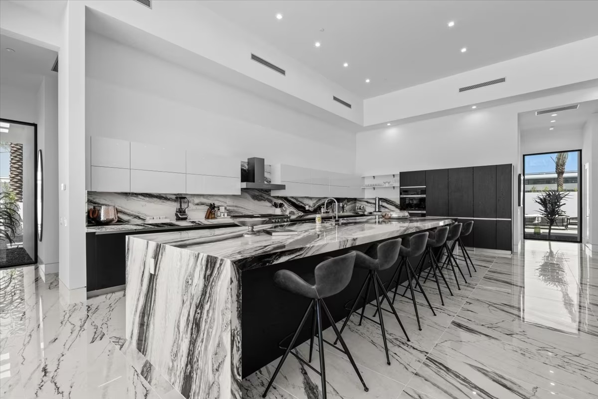 “Outdoor Music Allowed”. Welcome to this ultra-exclusive vacation rental , where this one-of-a-kind residence will exceed all of your expectations while embracing you, your family and your friends with the finest modern architecture and appointments available. Completely unprecedented in the world of short-term-rental properties, the gated community showcases a limited edition of 16 extraordinary residences of uncompromising luxury in a unique village-style enclave all located right across the street from the elegant Madison Club, and just minutes from restaurants and shopping. A massive pool with plenty of features such as very large tanning selves perfect for kids or to lie down in the sun, fire bowls, and LED waterfalls. Chic contemporary style with walls of glass and slideaway Fleetwood doors, oversized great room with 16′ ceilings, 12′ ceilings in other living areas and bedrooms, gorgeous floor tiles imported from Spain, and stunning open kitchens with European cabinetry and top-of-the-line Miele appliances. Every bedroom is a suite, complete with a private bath and large closet. Primary suites elevate personal luxury to new heights, with outdoor access, walk-in multi-head showers, freestanding tubs, and oversized walk-in closets with Italian-made custom built-ins. Enjoy the beauty of modern lighting, contemporary artwork, chic furnishings, Grohe plumbing fixtures and pivoting glass entry doors. Landscaping is impeccable and upscale, and select residences feature putting greens, fire bowls and fountains. Enviable location right next to the private communities of The Madison Club, The Citrus Club and Hideaway Golf Club makes it easy for guests to walk or bike to concerts, shops and restaurants. The Indian Wells Tennis Garden, high-end shopping on El Paseo, abundant recreation, and Palm Springs International Airport are all within easy reach. The ultimate luxury vacation awaits! Book your unforgettable stay today!