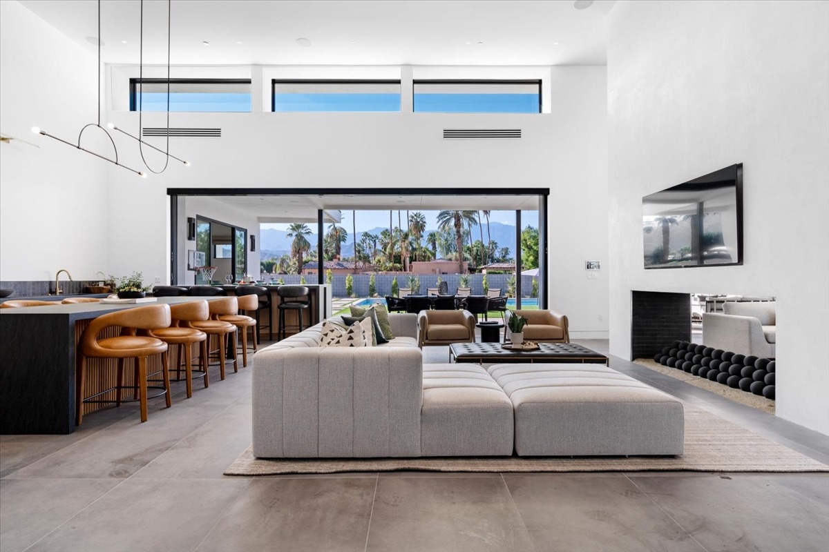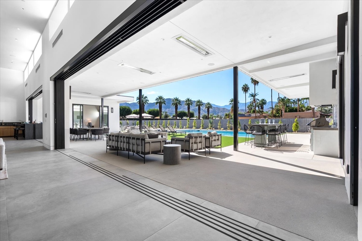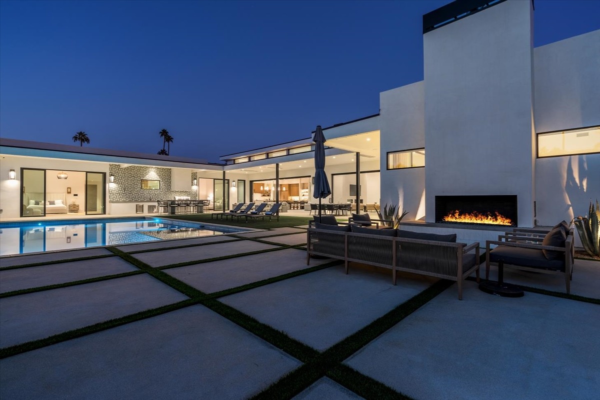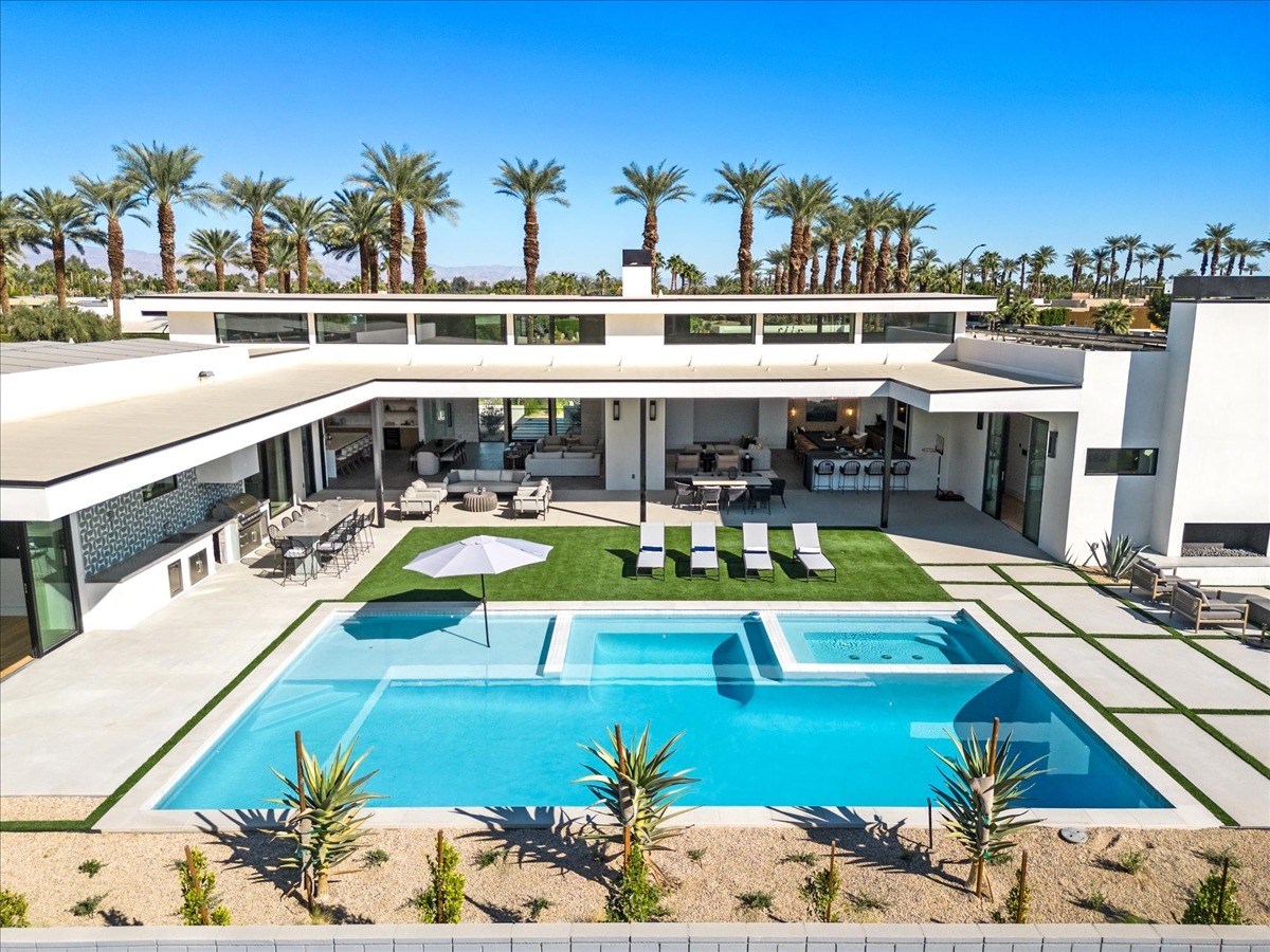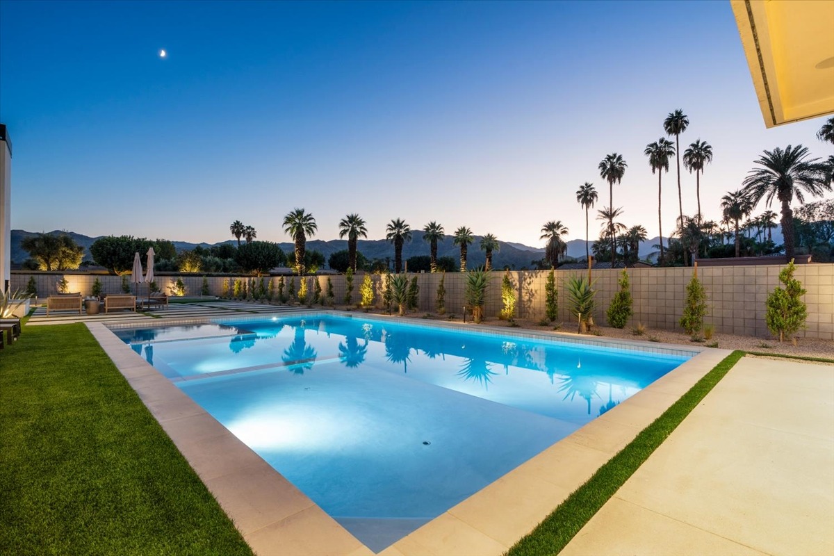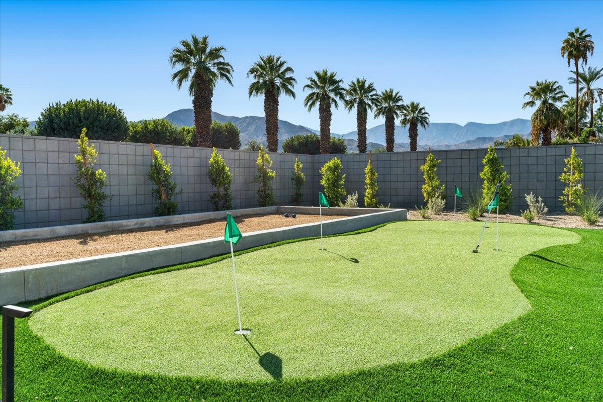 Welcome to one of the most luxurious and spectacular brand new construction vacation rental homes in the desert. This stunning custom vacation brings contemporary luxury with outstanding panoramic views. Every inch of this luxurious house has been created for our more exquisite guest providing maximum comfort and full entertainment. Indoor/outdoor bar, two living room areas, pocket windows/pocket doors, indoor/outdoor fire pits, bocce ball,putting green and much more awaits your family/friends.