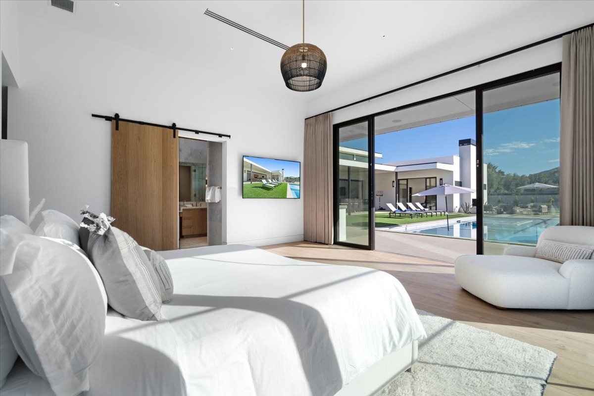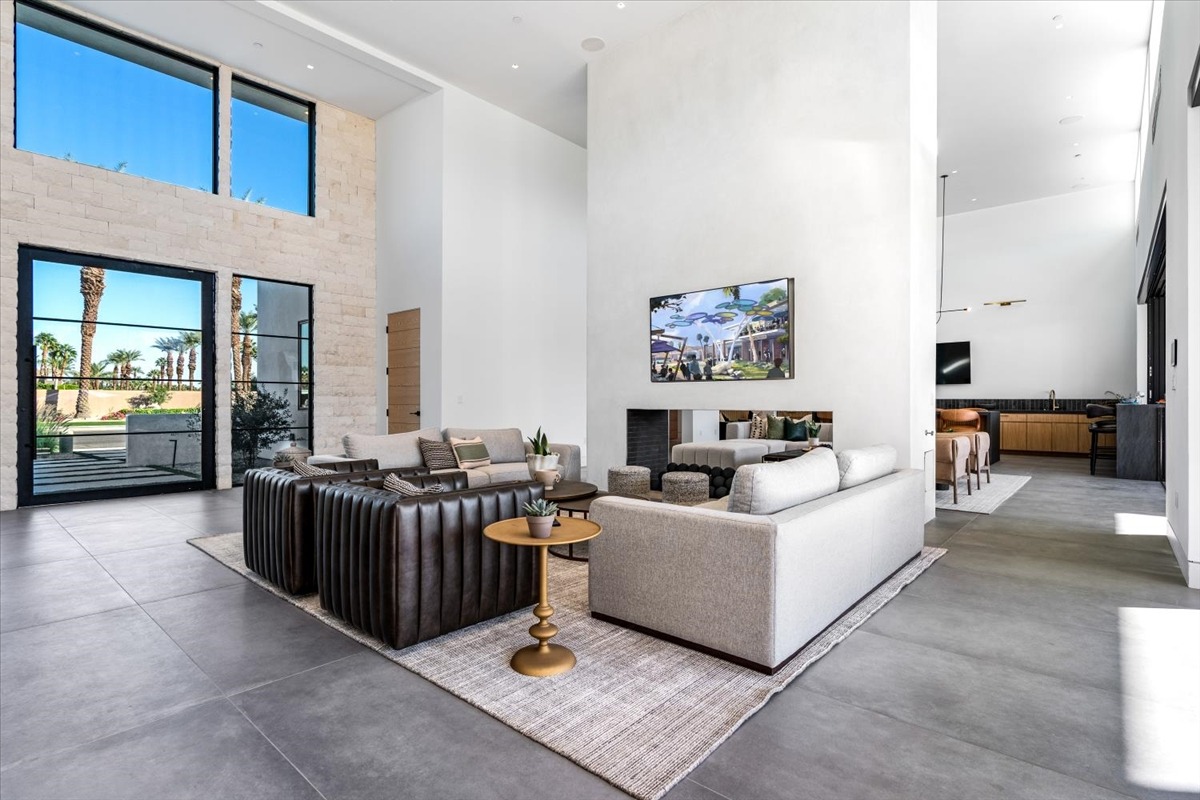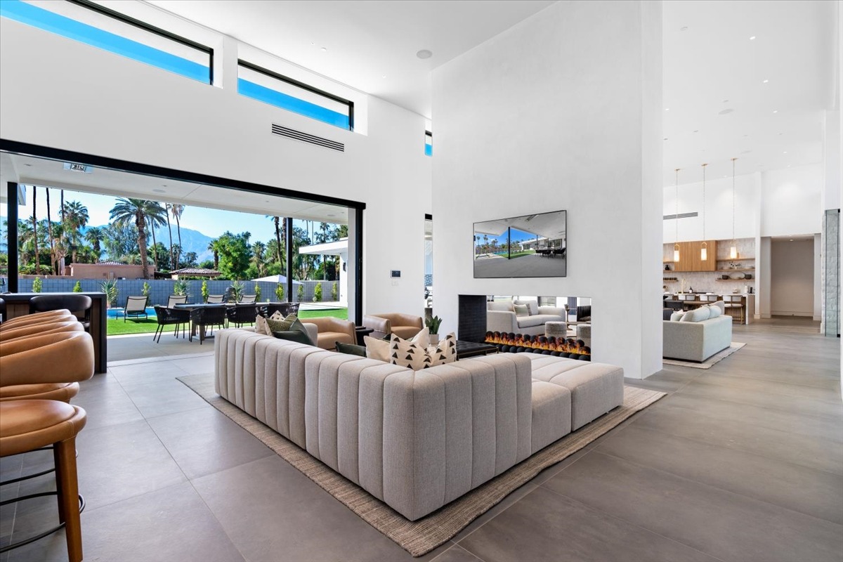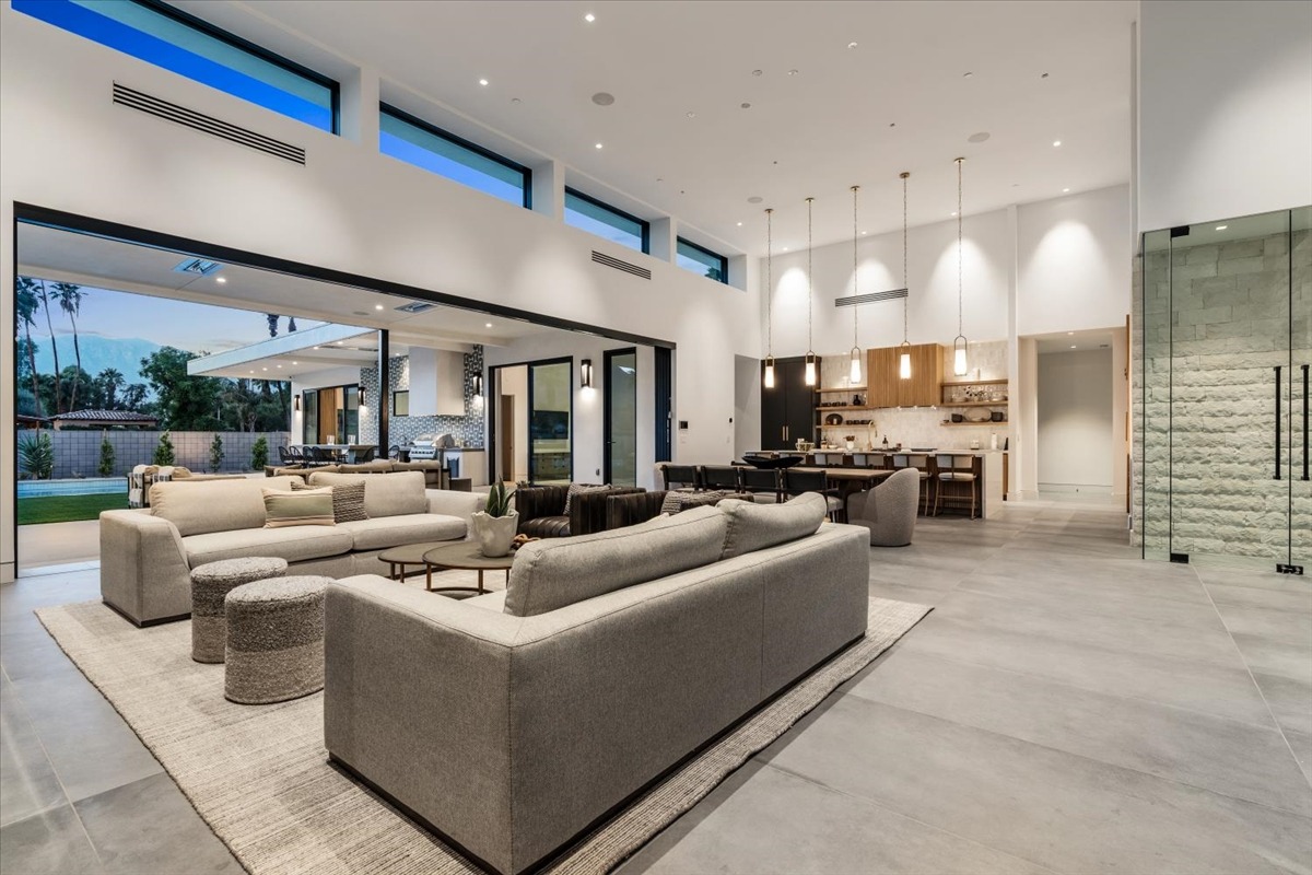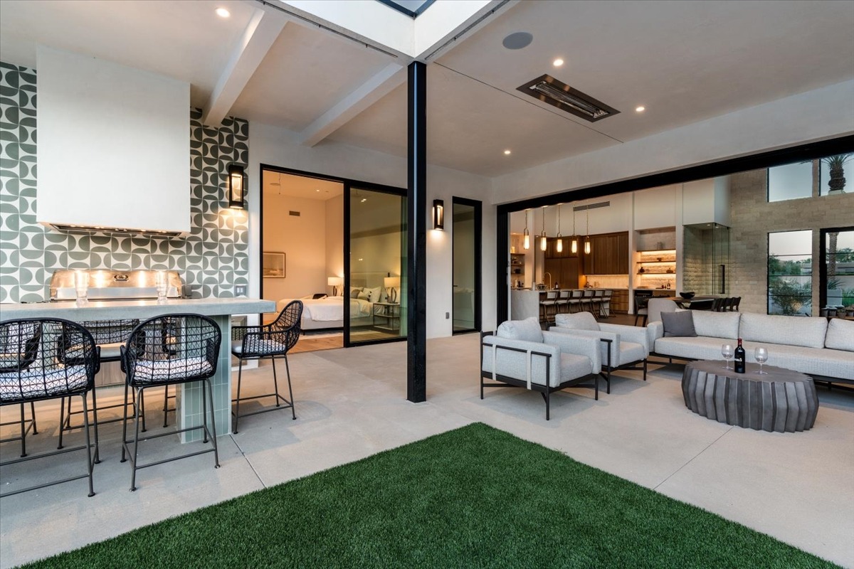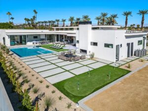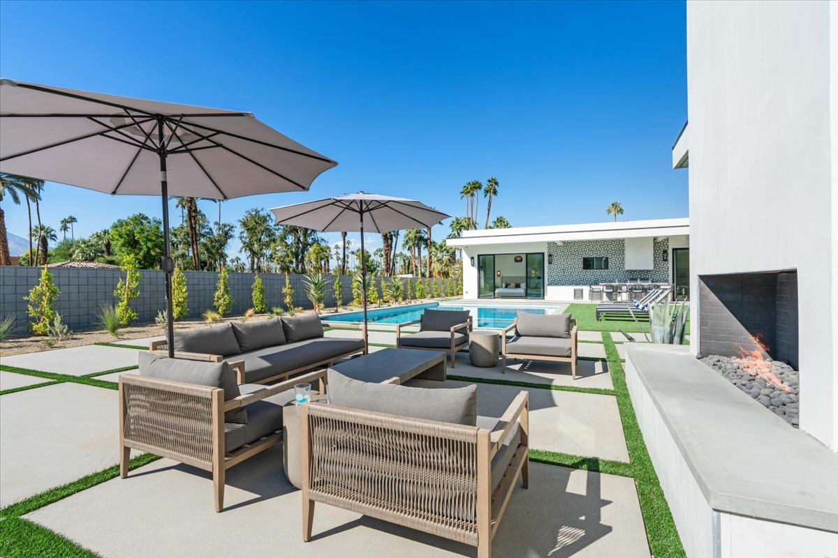 Welcome to one of the most luxurious and spectacular brand new construction vacation rental homes in the desert. This stunning custom vacation brings contemporary luxury with outstanding panoramic views. Every inch of this luxurious house has been created for our more exquisite guest providing maximum comfort and full entertainment. Indoor/outdoor bar, two living room areas, pocket windows/pocket doors, indoor/outdoor fire pits, bocce ball,putting green and much more awaits your family/friends.