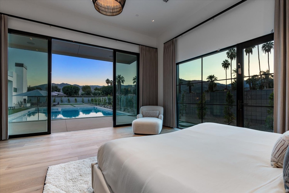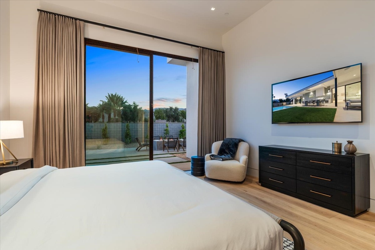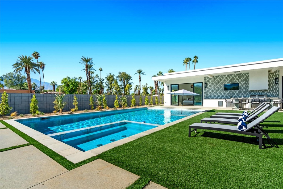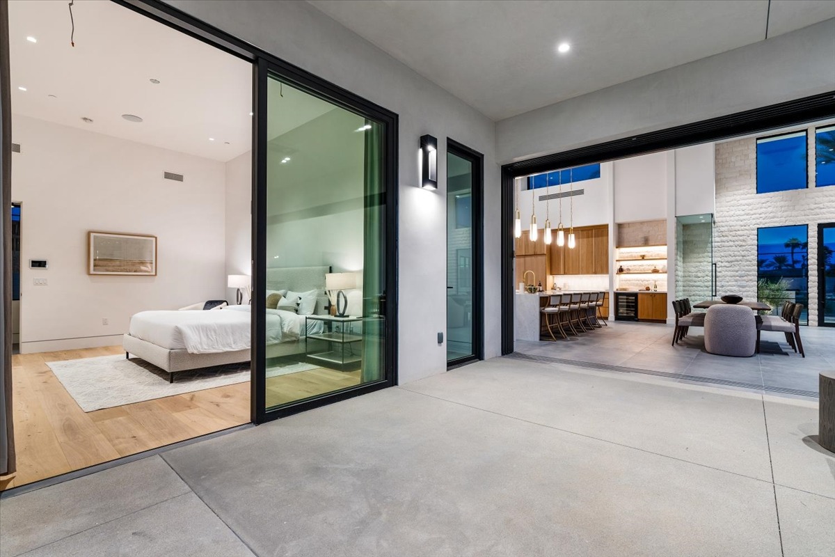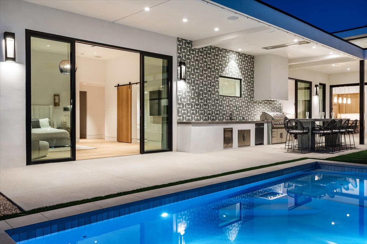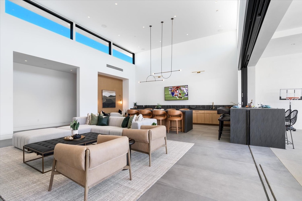 Welcome to one of the most luxurious and spectacular brand new construction vacation rental homes in the desert. This stunning custom vacation brings contemporary luxury with outstanding panoramic views. Every inch of this luxurious house has been created for our more exquisite guest providing maximum comfort and full entertainment. Indoor/outdoor bar, two living room areas, pocket windows/pocket doors, indoor/outdoor fire pits, bocce ball,putting green and much more awaits your family/friends.