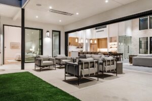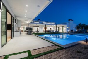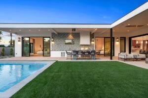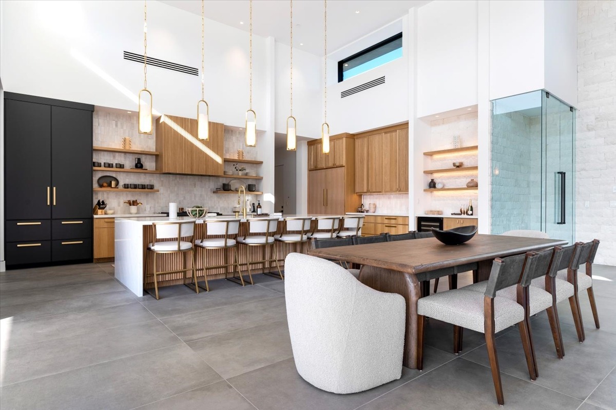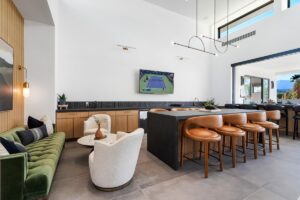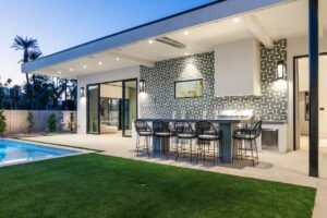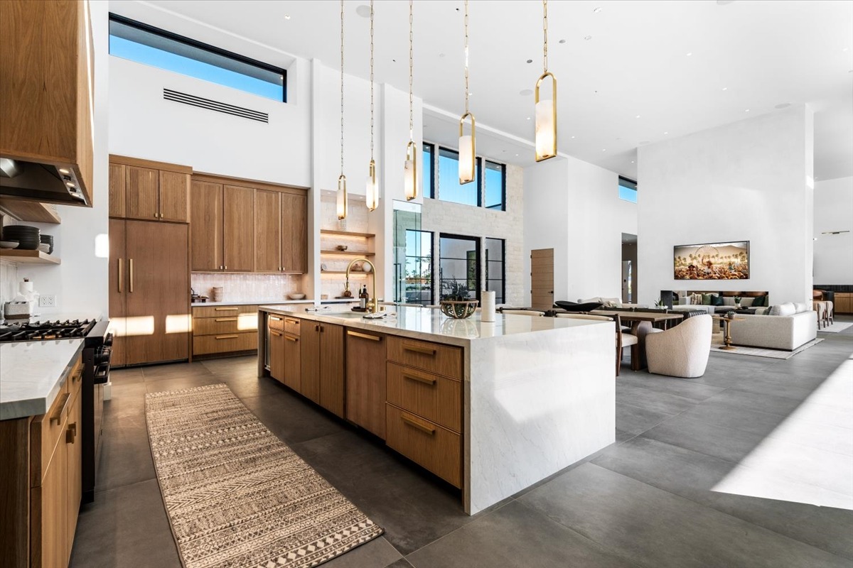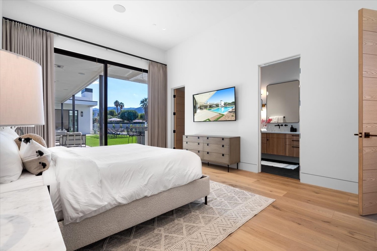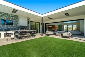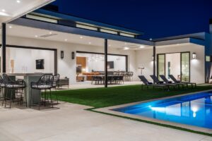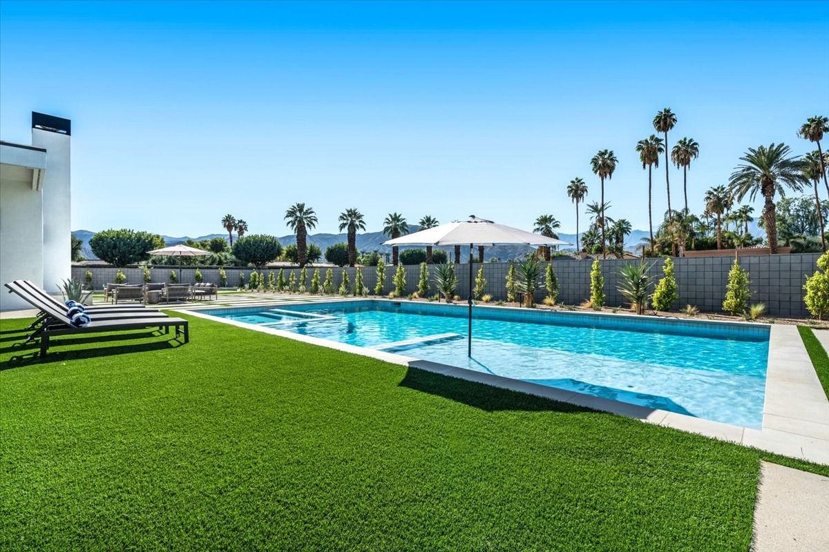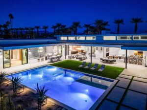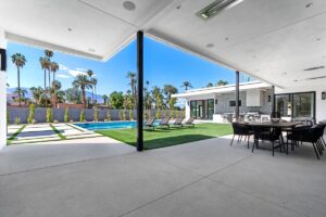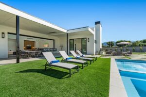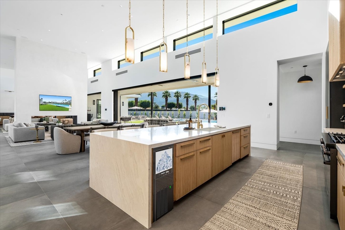 Welcome to one of the most luxurious and spectacular brand new construction vacation rental homes in the desert. This stunning custom vacation brings contemporary luxury with outstanding panoramic views. Every inch of this luxurious house has been created for our more exquisite guest providing maximum comfort and full entertainment. Indoor/outdoor bar, two living room areas, pocket windows/pocket doors, indoor/outdoor fire pits, bocce ball,putting green and much more awaits your family/friends.